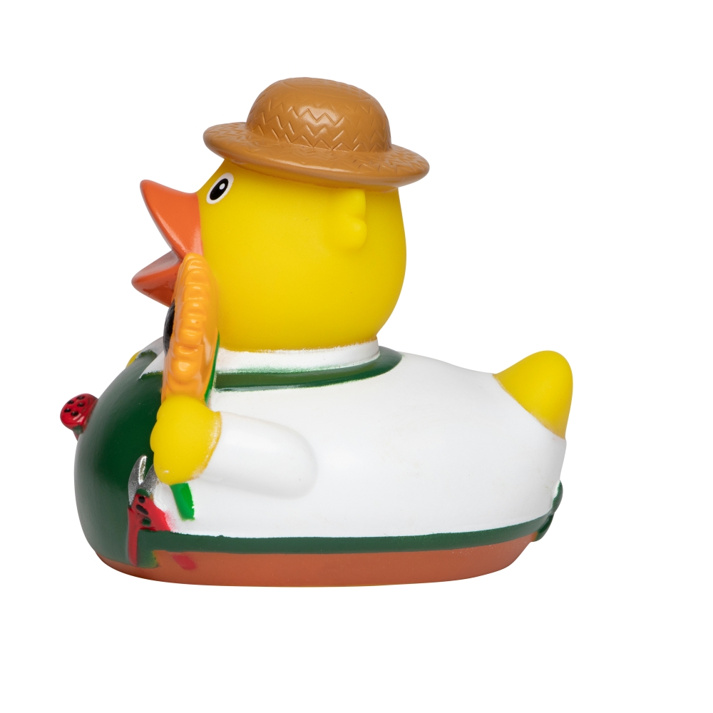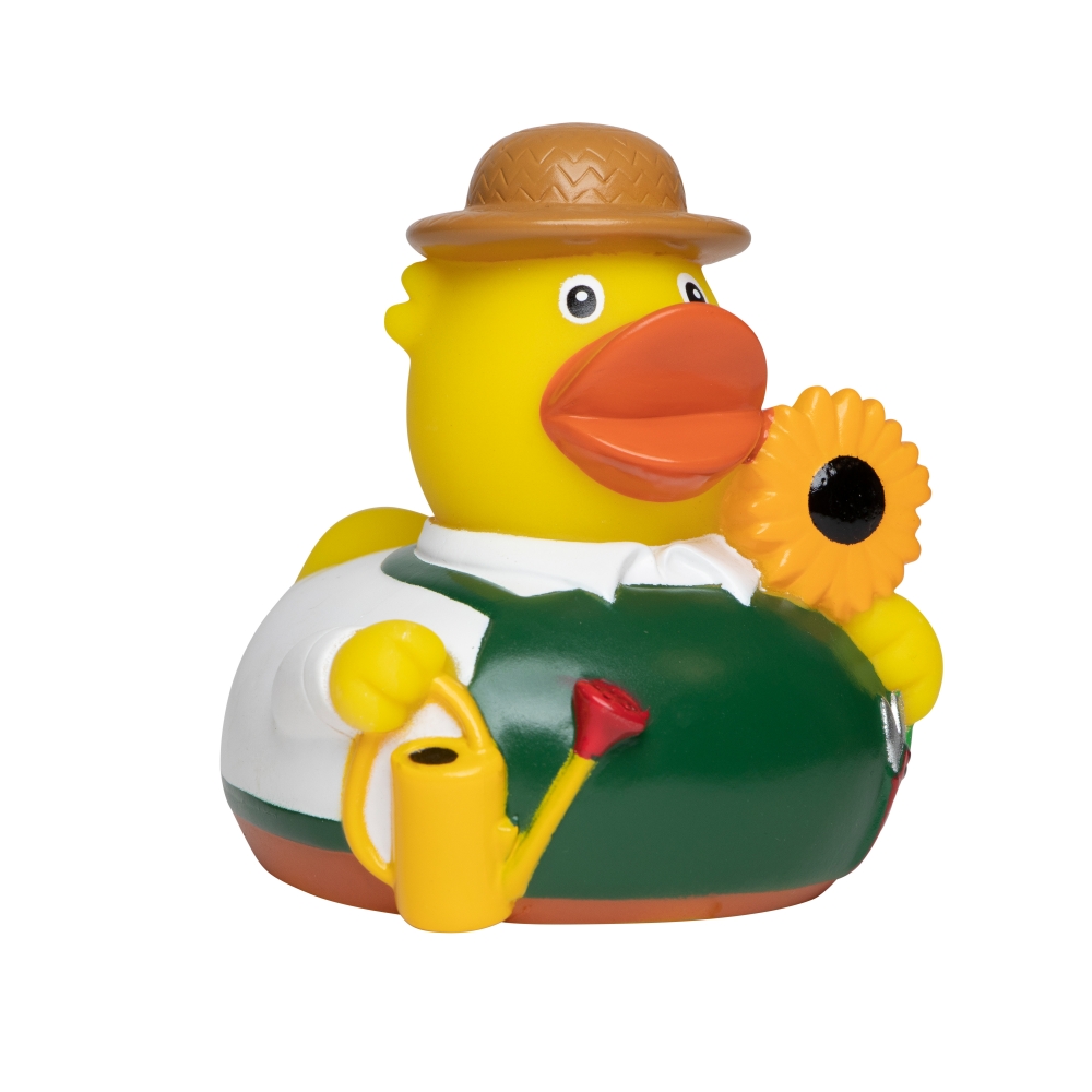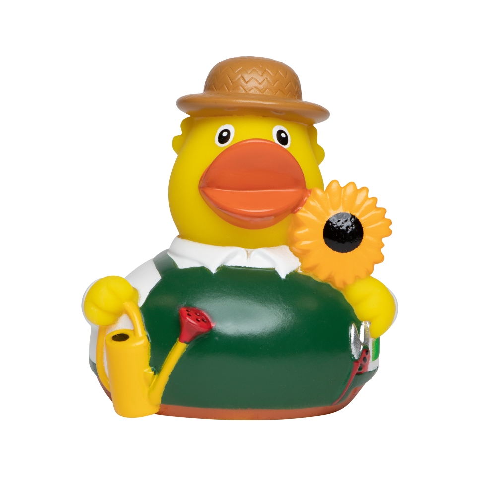 Artikel-Nr: GUT31119Unsere Gärtner-Ente mit Sonnenblume, Strohhut und gelber Gießkanne hat den grünen Daumen, und das ganz ohne Finger! Was diese Ente mit ihren Flügeln anpackt, wächst und gedeiht und mit der Gartenschere, die natürlich auch immer dabei ist, schneidet sie auch gerne mal eine der Blumen ab, um einen sonnigen Gruß mitzubringen.