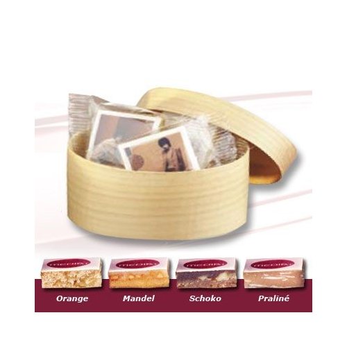 5 Logo-Florentiner Größe M in ovaler Holzdose. Begeisterte Kunden sind unser Ziel! Fünf feine, mit Lebensmittelfarben 4c nach Ihren Wünschen bedruckte Florentiner-Plätzchen in einer praktischen Kissen-Verpackung in einer optional bedruckbaren Holzdose. Bis zu fünf verschiedene Motive ohne Aufpreis. Besonders gut für Bildmarken oder Produktfotos geeignet. Überraschung, Staunen und Begeisterung sind Ihnen bei Ihren Adressaten sicher. Ob als Mailing-Begleiter, Produktsendungsbeilage oder persönlich übergebenes Präsent wirkungsvoller kann Ihre Werbebotschaft kaum transportiert werden. 1 VE = 35 Dosen. Geschmacksrichtung: Orange (Art.Nr. 494MHD), M ...
