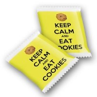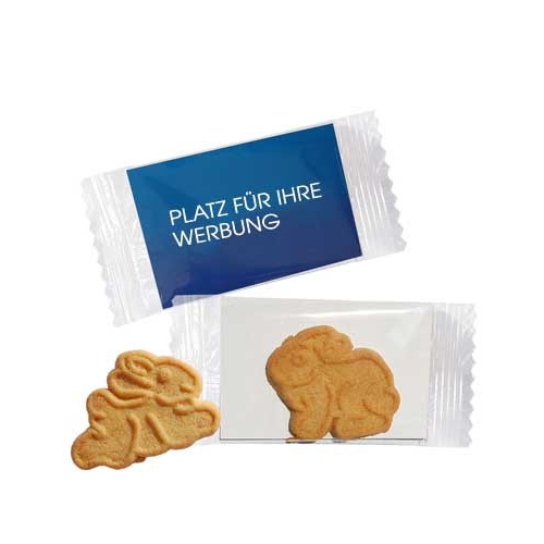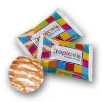 Mini Keks, ca, 7 g, in weißer oder transparente Folie rundum bedruckt, Lieferzeit ca, 4 Wochen nach Freigabe Korrektur, Haltbarkeit 9 Monate inkl. 1-farbiger Druck, zzgl. Drucknebenkosten