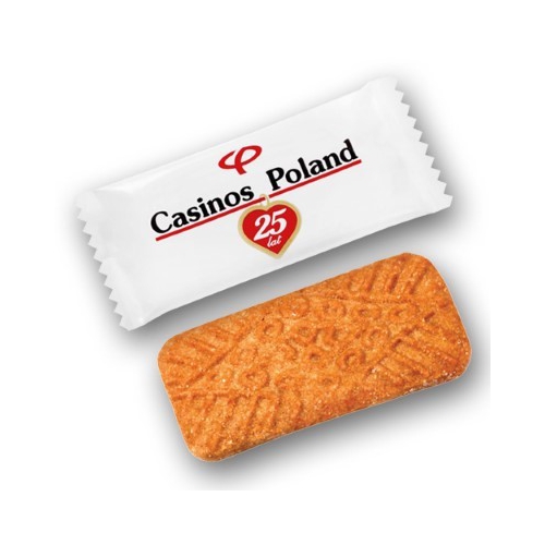 Für einen geschmacklich-emotionalen Höhepunkt sorgt der knusprige Keks-Klassiker mit Schokogeschmack. Die aromasichere Klarsichtfolie wird einfarbig weiß mit Ihrem Logo, Slogan und/oder Text bedruckt und Ihre Werbebotschaft somit wirkungsvoll im Blickfeld des Kunden platziert. Als kleines, aber feines Give-away bei Messen, Tagungen oder Promotion-Aktionen liegen Sie mit diesem leckeren Gebäck immer richtig! Der Keks ist durch gestaffelte Preise unschlagbar günstig und kann in kleineren Auflagen ab 400 Stück produziert werden, ist aber auch für große Aktionen bestens geeignet.