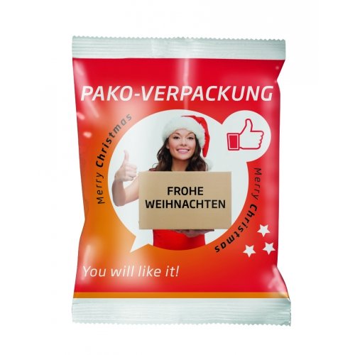 Ein idealer Werbeartikel für Messen oder große Events. ein geschmackvoller Gewürzkeks in praktischem Flow-Pack. Gestalten Sie die Verpackung nach Ihren Wünschen. Inhalt: Gewürzkeks ca. 6 g Geschmack: Gewürz-Karamell Verpackungsgröße: 90 × 40 mm Individualisierung: Flexodruck