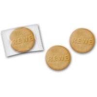 Für Messen, Produktshows, Meetings, Events oder einfach nur als kleines Giveaway genau richtig. Auch für Mailings sehr beliebt. Feine, mit Lebensmittelfarben nach Ihren Wünschen bedruckte Plätzchen, einzeln verpackt in Klarsichtfolie. Bitte beachten Sie bei diesem Artikel, dass er jeweils nur in Verpackungseinheiten zu je 140 Stück bestellbar ist. Die Bestell-Mindestmenge beträgt eine Verpackungseinheit. Gerne können bis zu vier unterschiedliche Motive ohne Aufpreis innerhalb einer Produktionseinheit gedruckt werden. Die Motive werden jeweils zu ungefähr gleichen Teilen produziert.