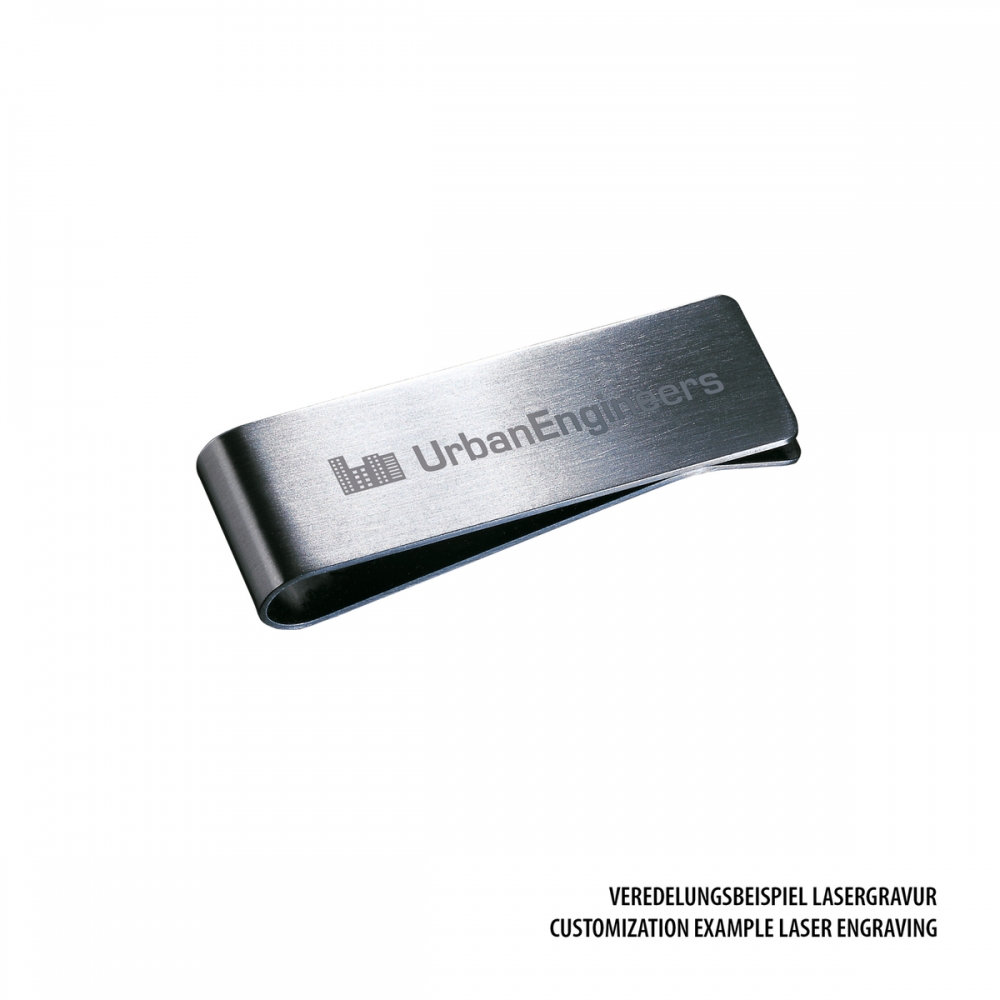 Ein schweres Portmonee muss nicht sein. Unsere matte Geldscheinklammer aus Edelstahl gibt Scheinen sicheren Halt. Mit einer Lasergravur wird diese Geldscheinklammer zum dezenten Werbeträger mit langer Gebrauchsdauer.