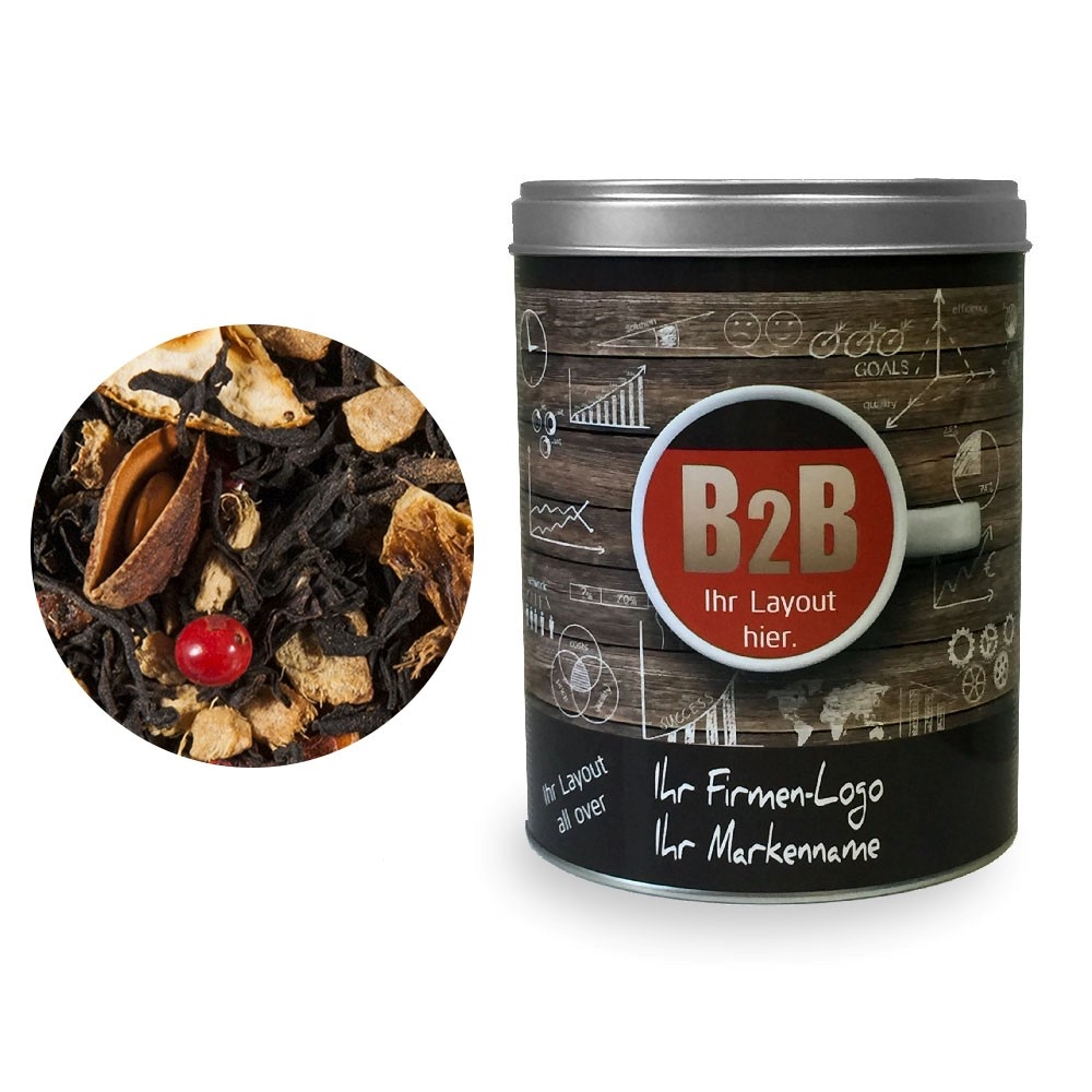 Artikel-Nr: HLSN60102966Tee als Werbegeschenk aus der YuboFiT® Tee Manufaktur. Ein zimtiges Geschmackserlebnis mit süßlich-warmer, samtener Schärfe im Abgang. Ein Premium-Tee aus unserem Special -Sortiment mit verkapselten Aromagranulaten