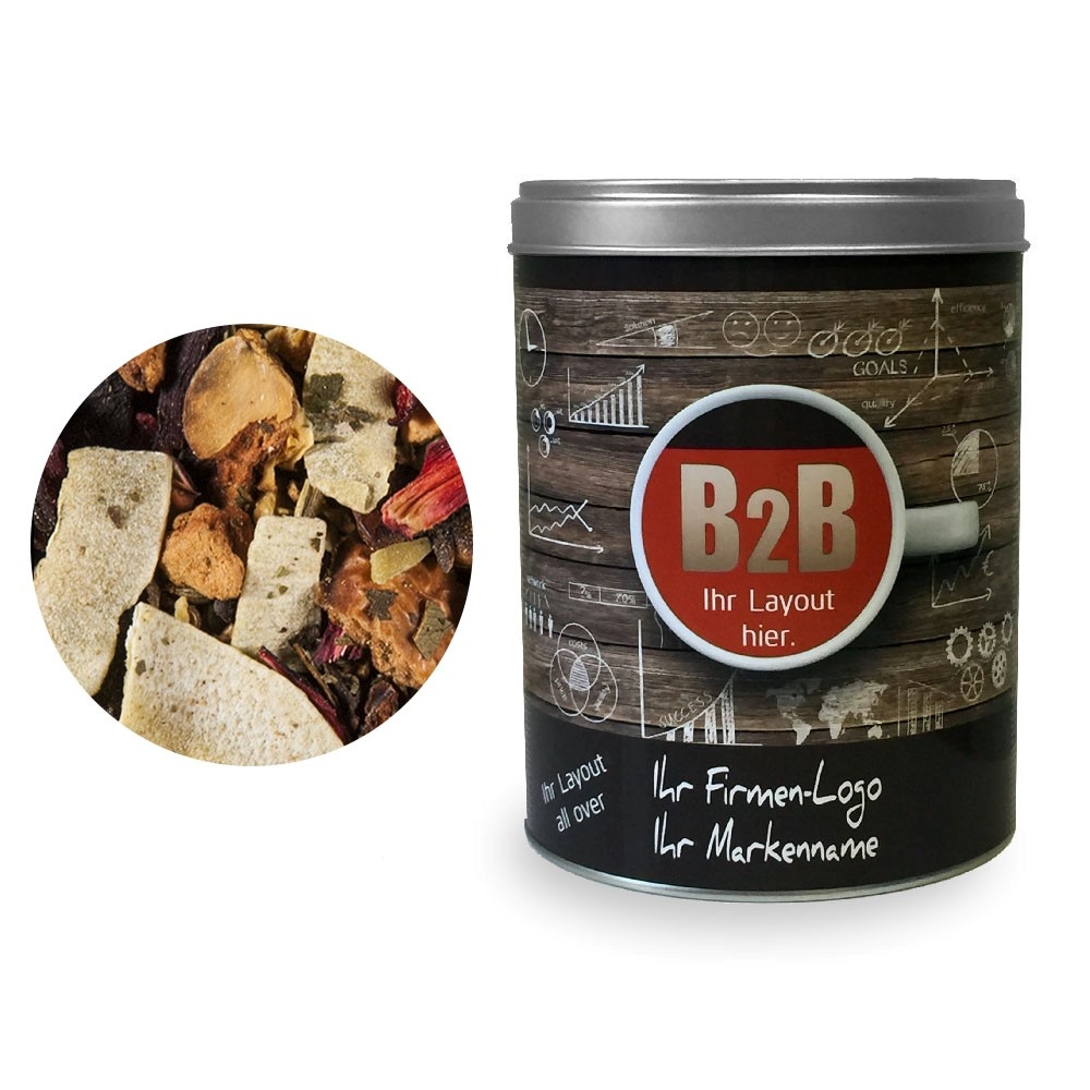 Marken-Tee als Werbegeschenk aus der YuboFiT® Tee Manufaktur. Eine geheimnisvolle Liaison, bei der sich die orientalischen Chai-Gewürze mit fruchtigen Noten der Orange mischen