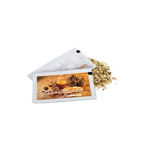 Artikel-Nr: 4494050-2Eine pfiffige Idee Glühwein-Gewürz (ohne Glutamat), ca. 6 g zu verpacken. Dieses