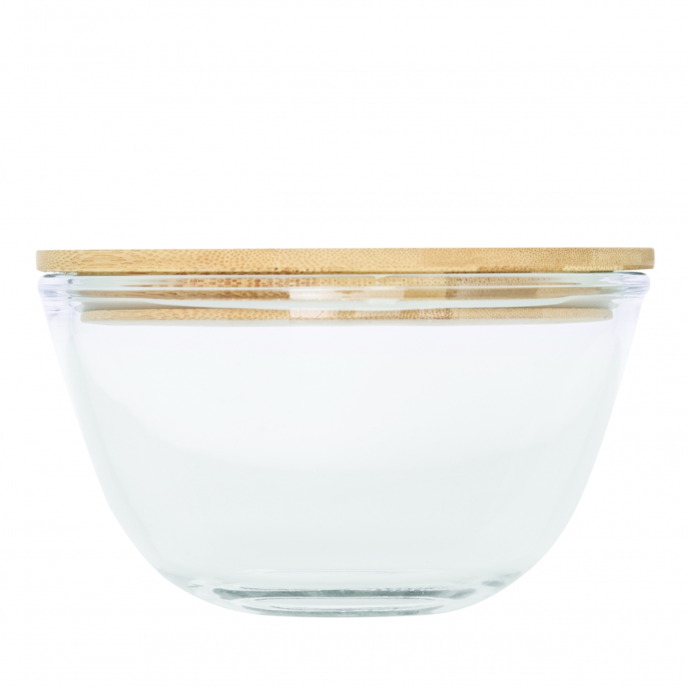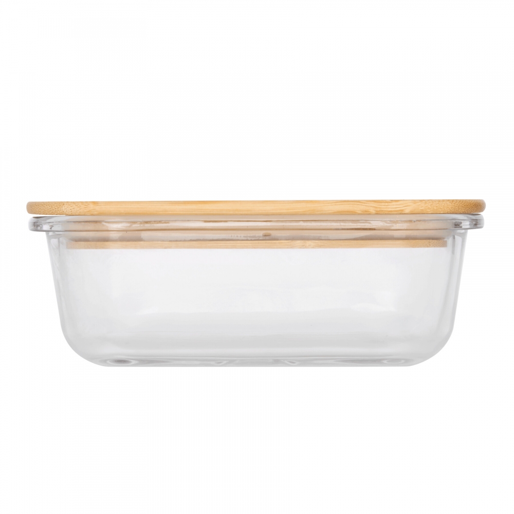 Für das nächste Mittagessen. Schöne Box mit einer Schale aus hochwertigem und hitzebeständigem Borosilikat-Glas. Der Deckel aus Bambus verfügt über einen Silikonring und hält somit besonders gut auf der Schale. Die Glasschale ist für die Verwendung in der Mikrowelle geeignet.