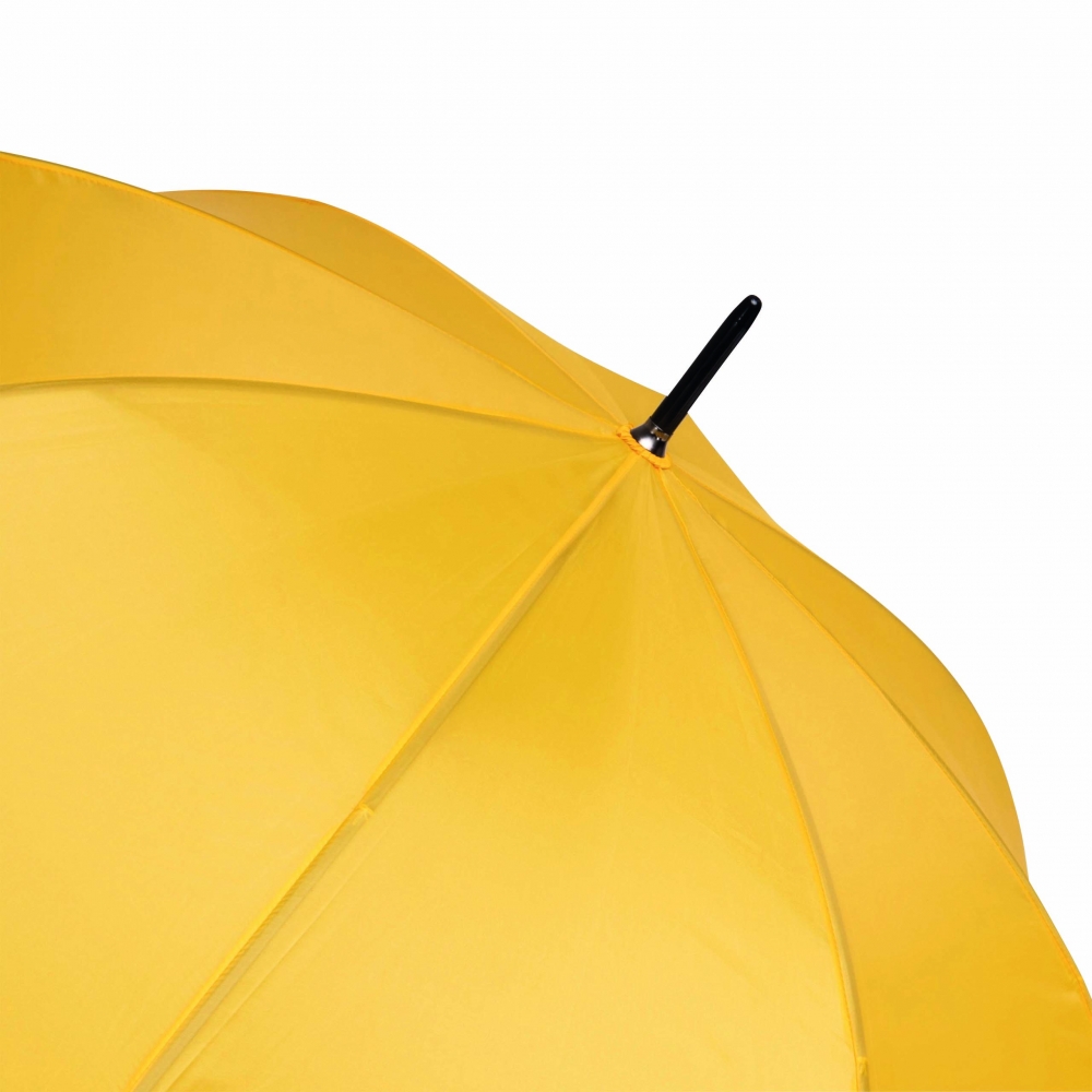 Schirm im exklusiven Design mit Metallschaft und GlasfaserSpeichen und gummibeschichtetem Kunststoffgriff. Wird mit farblich zum Baldachin passender Hülle geliefert.