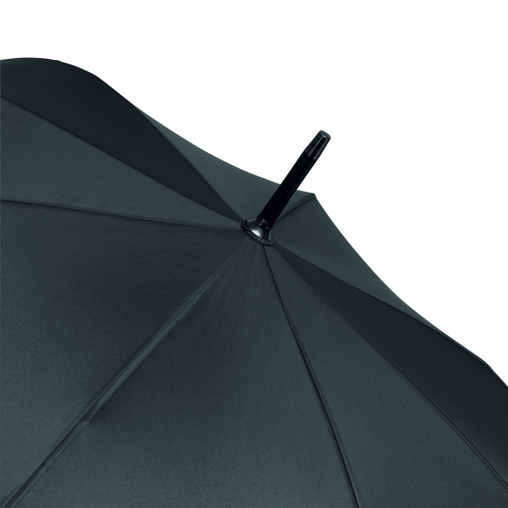 Golfschirm/Portierschirm mit Handöffner, Polyester-Pongee-Bespannung (190 T) (hydrophob imprägniert), mattierter Aluminium-Stab (14 mm), GLASFIBER-Speichengestell (windproof), exklusiver, gerader Ergonomie-Griff - Material-Mix - schwarz gummiert mit aluminium-farbenen Abschlüssen, mit angepasster Stockspitze, aluminium-farbene Speichentips, WIND-/ÜBERSCHLAGSICHER, ca. 75 cm Speichenlänge, Durchmesser ca. 130 cm, Länge ca. 98 cm, Gewicht ca. 490 g. Erhältlich in den Farben: dunkelgrau, navyblau und schwarz.