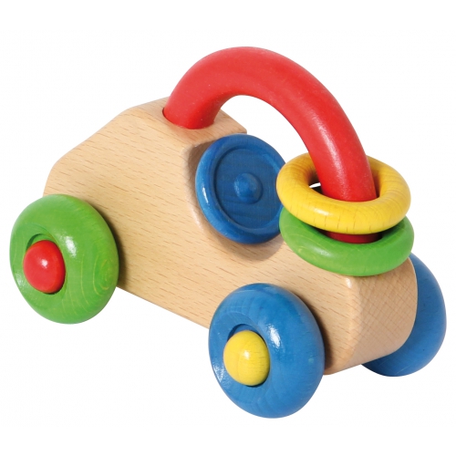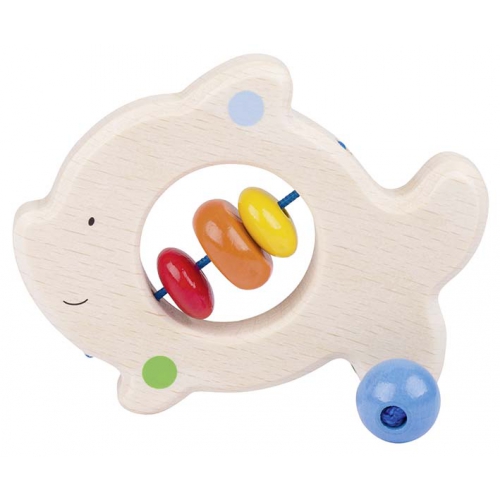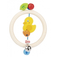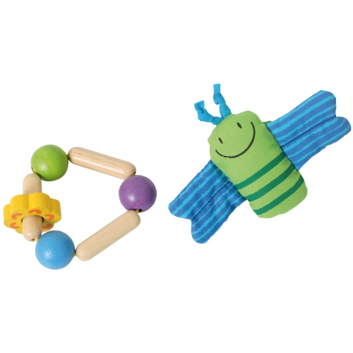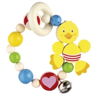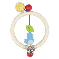 Der Greifling besteht aus einem hölzernen Rasselring mit verschiedenen Spielelementen und Gummizug sowie einer Armbandrassel aus Stoff im Tierdesign mit Klettverschluss. Beim Spiel mit dem Greifling trainiert das Baby die Motorik seiner Hände, schult sein Gehör und hat jede Menge Spaß.
