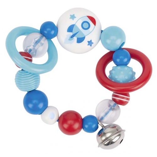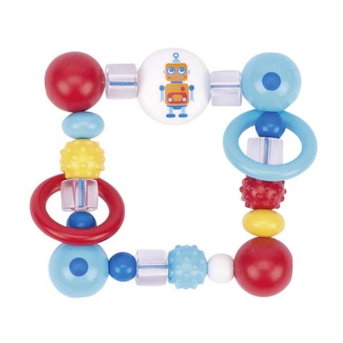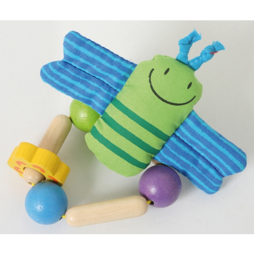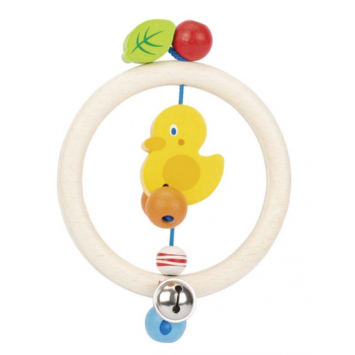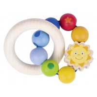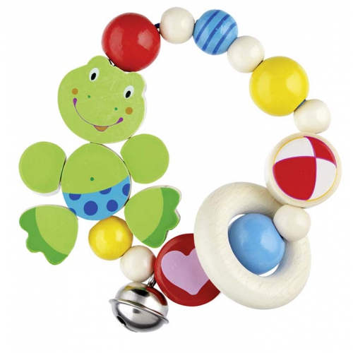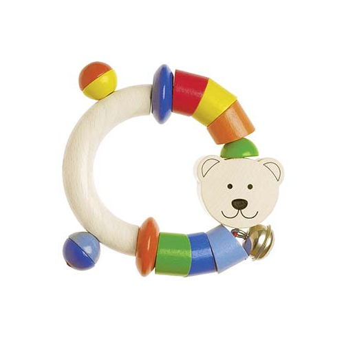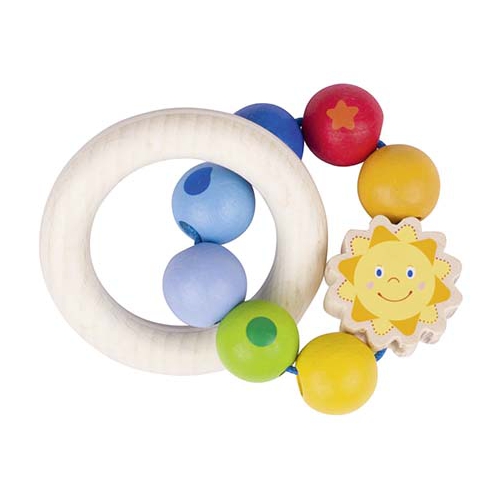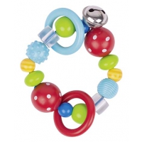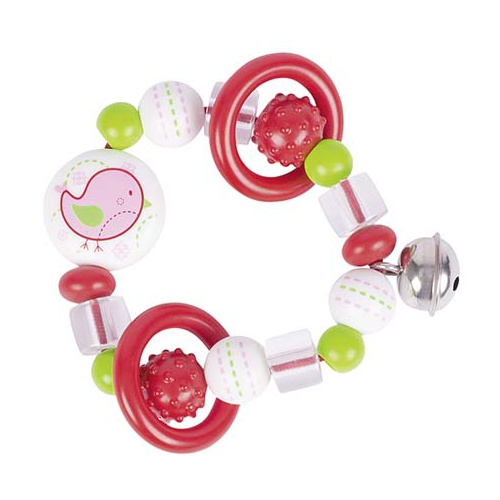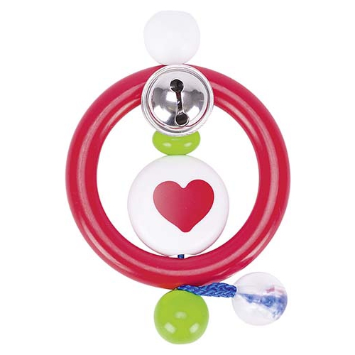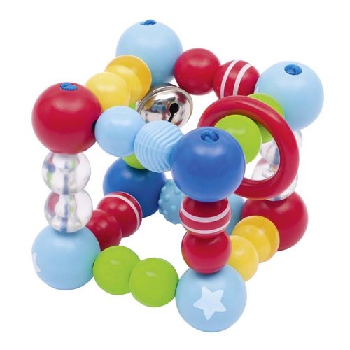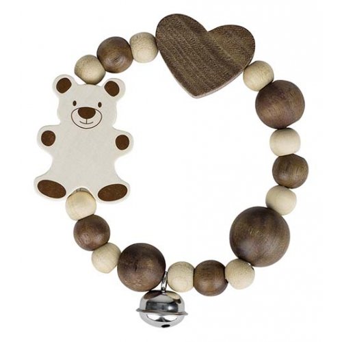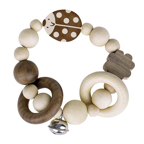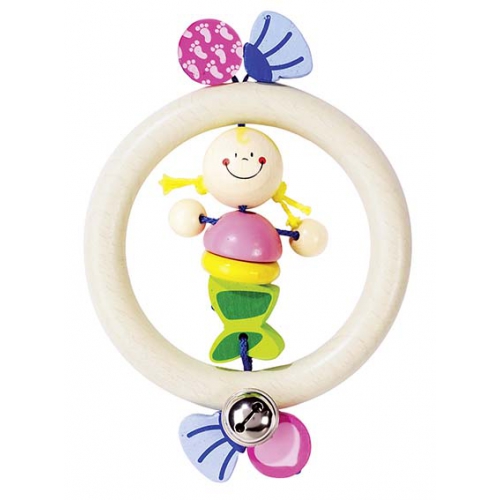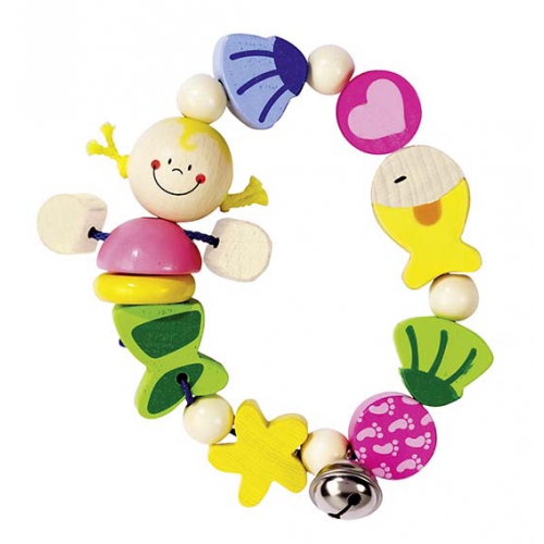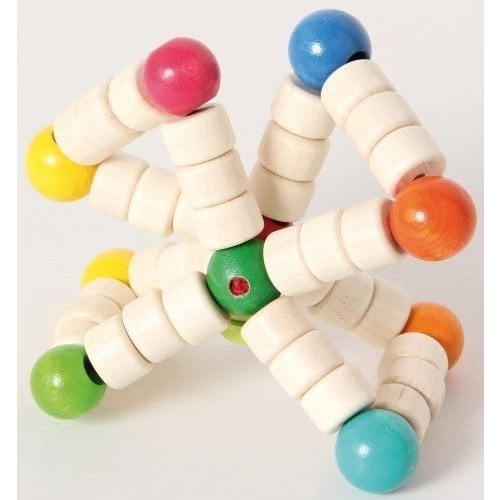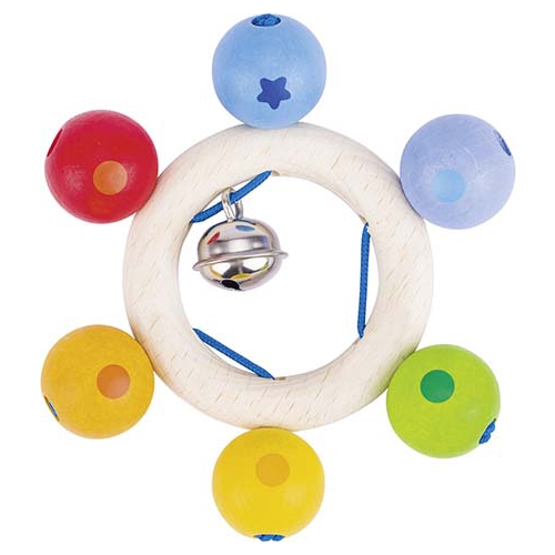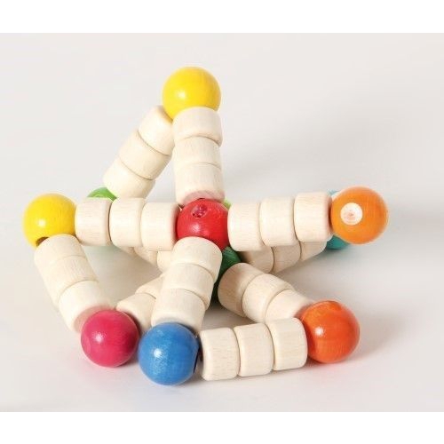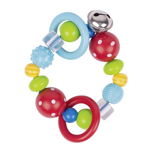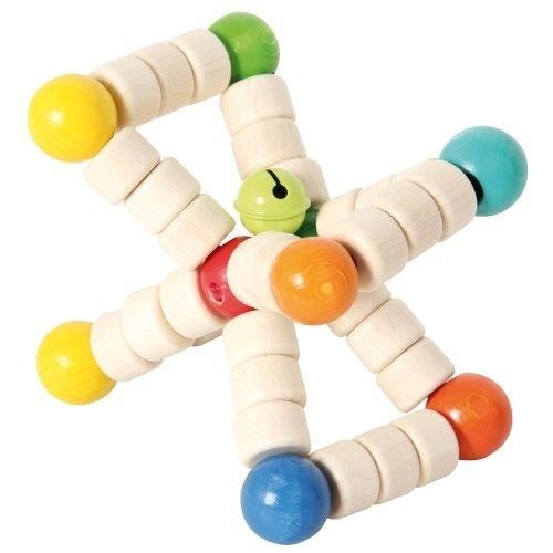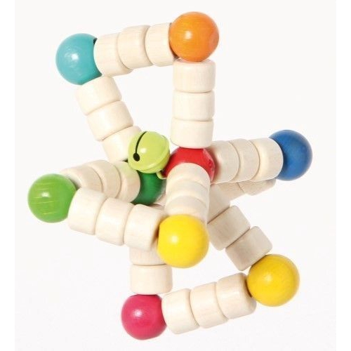 Mit zwei Glöckchen. Den Greifling kann man verbiegen. Die Holzperlen massieren dabei die Handflächen. Achtung! Nicht geeignet für Kinder unter 36 Monaten.