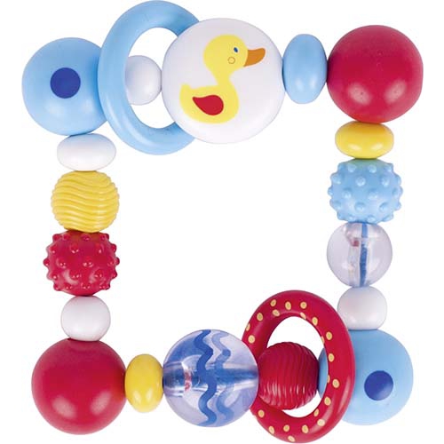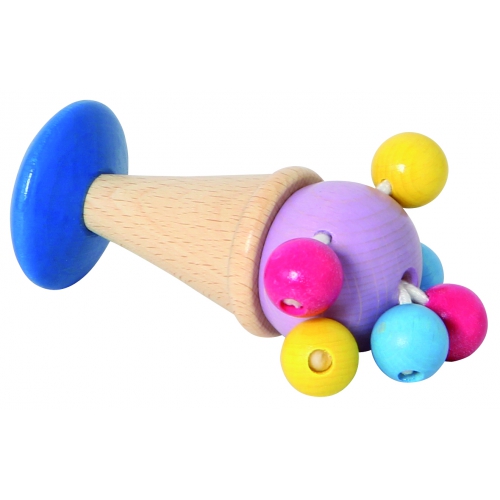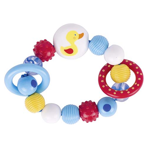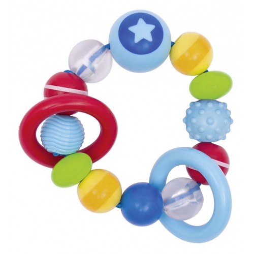 Schütteln, Rasseln und Beißen - Durch die einfach zu greifenden kleinen Obälle und den durchsichtigen Noppengriff, der mit bunten Rasselperlen gefüllt ist, wird dieser Greifling schnell zum Lieblingsspielzeug.