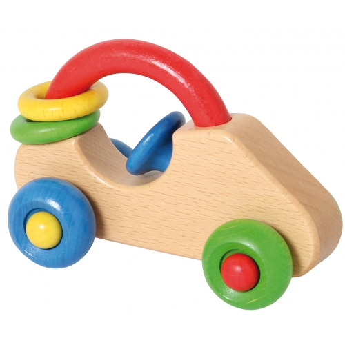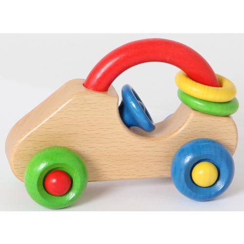 Die Ringe sind aus einzelnen Holzsegmenten. Dadurch schmiegt sich der Greifling angenehm in Babys Fäustchen. Die Holzkugeln massieren dabei das Händchen. Achtung! Nicht geeignet für Kinder unter 36 Monaten.