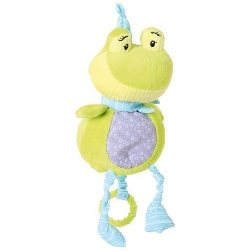 Farbenfroher Greifling mit weichen, flexiblen Armen zum leichten Fassen und Herumkauen. Durch die lustigen Klick-Sounds beim Drehen entstehen außerdem akustische Anreize für die Kleinsten.
