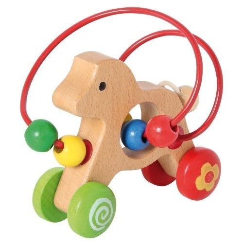 Ein vielseitiges Motorikspielzeug und Greifling für kleine Kinder. Das handliche, farbenfrohe Motorik-Pferdchen hat viele bunte Holzperlen, die um das kleine Pferd bewegt werden können. So werden die Hand-Auge-Koordination und die Farberkennung gefördert und die Handmuskulatur gestärkt.