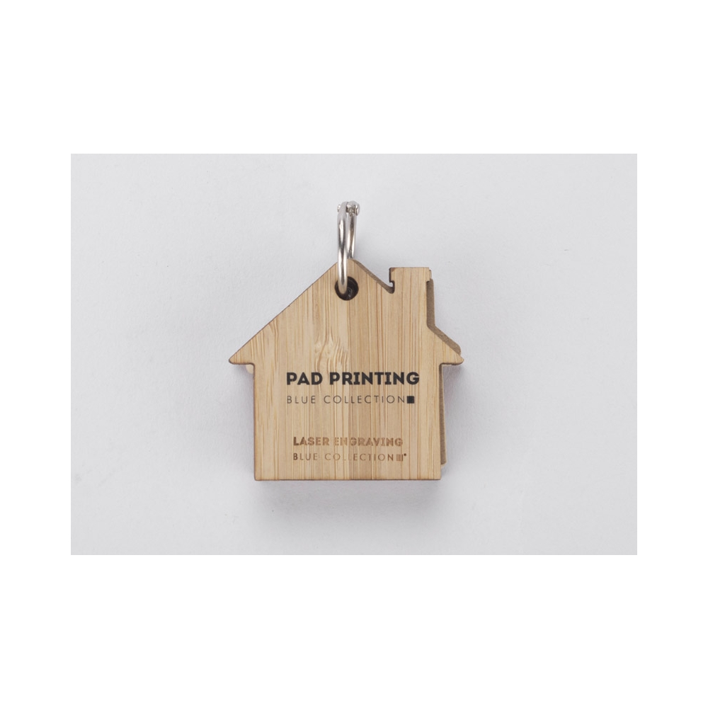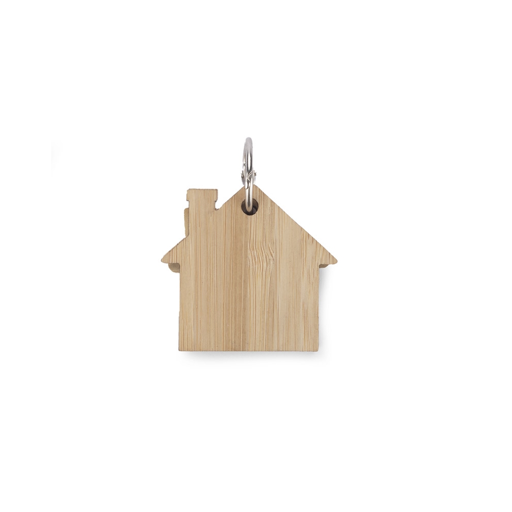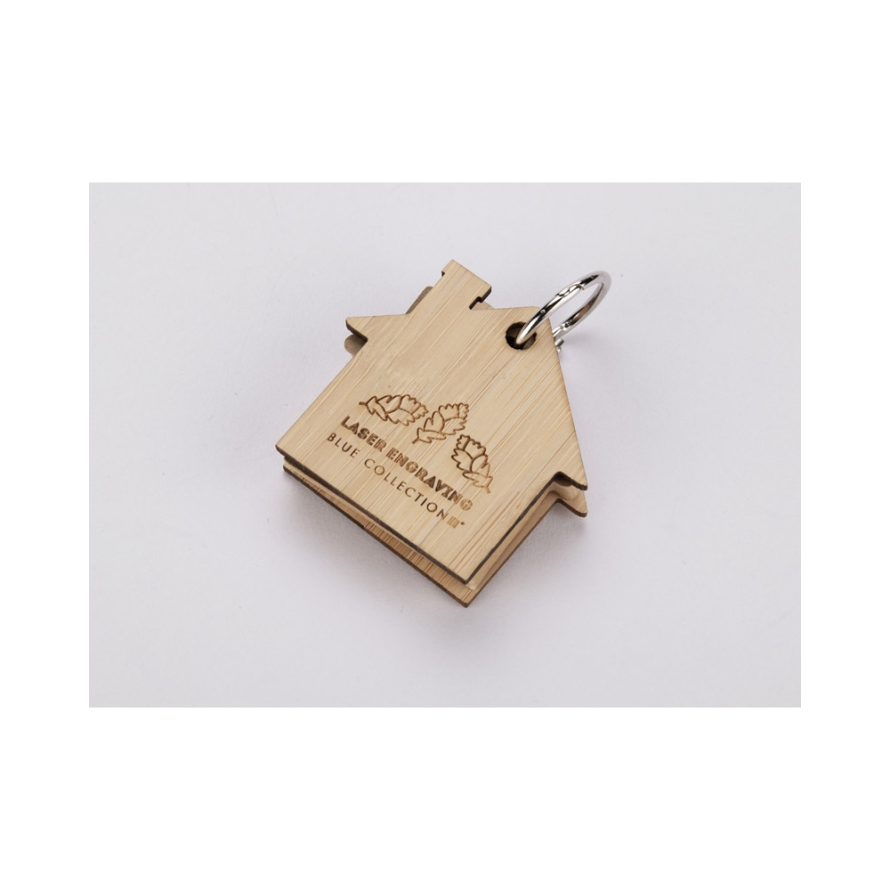Haftnotizen mit einem Schlüsselanhänger HOMA in Form eines Hauses, das den Benutzer lange begleiten wird. Nachdem die Zettel aufgebraucht sind, dienen die Bambusstücke weiterhin als Schlüsselanhänger.