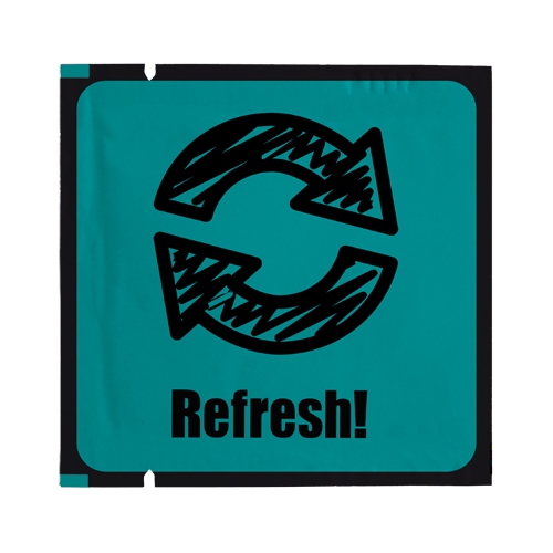 Sachet 'classic' 60x80mm mit je einem Erfrischungs-,Handreinigungs-,Brillenputz- oder Fleckenentferner-Tuch mit Zitronen- oder Lavendelduft. Inhalt: 1 Tuch