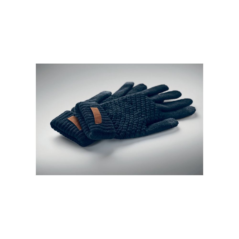 Gestrickte Handschuhe aus weichem, elastischem RPET-Polyester mit Patch.
