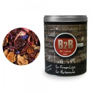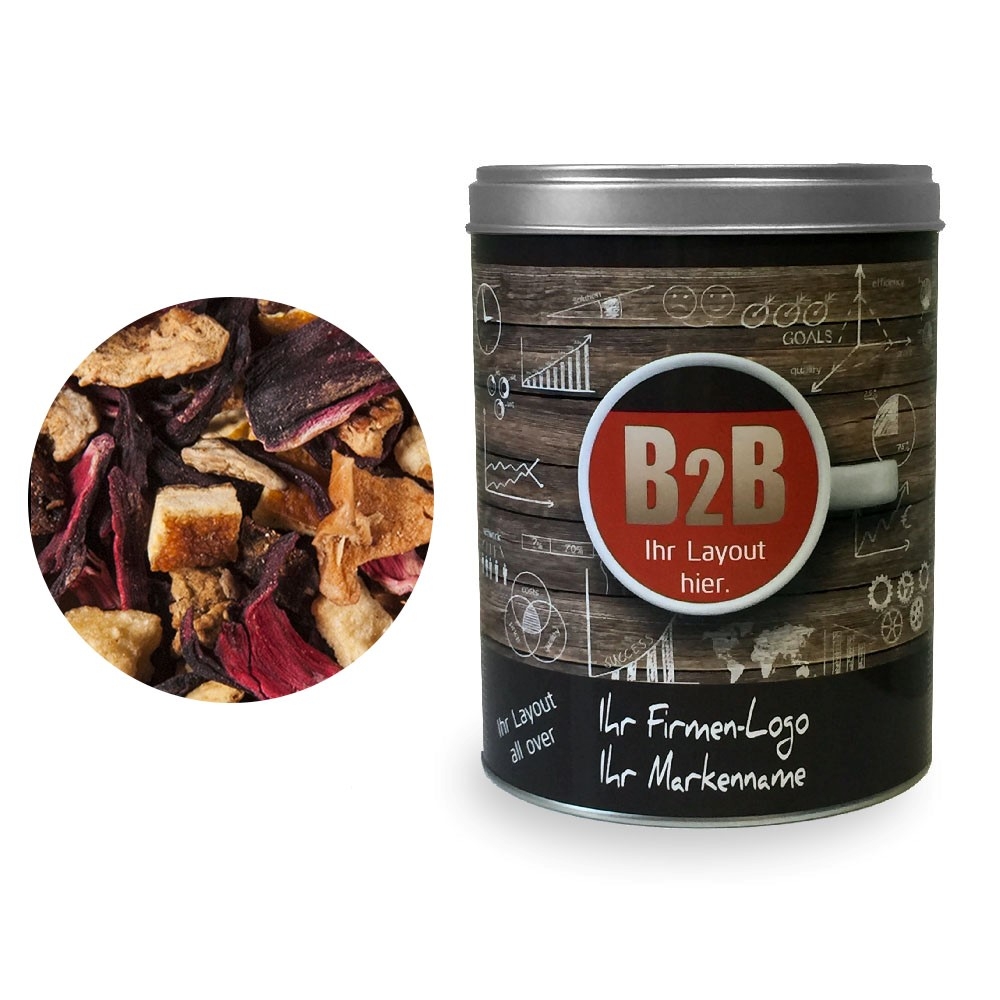 Artikel-Nr: FNM01685Kraftpapierdose Maxi aus Papier. Werbeanbringung als Etikett in 4c individuell bedruckbar. Zutaten Kaminfeuer Tee: Hibiskusblüten, Ingwer, Hagebuttenschalen, Apfel, Karotten, Orangenschalen, natürliches Aroma, Lemongras, Kornblumenblüten, Chillies.