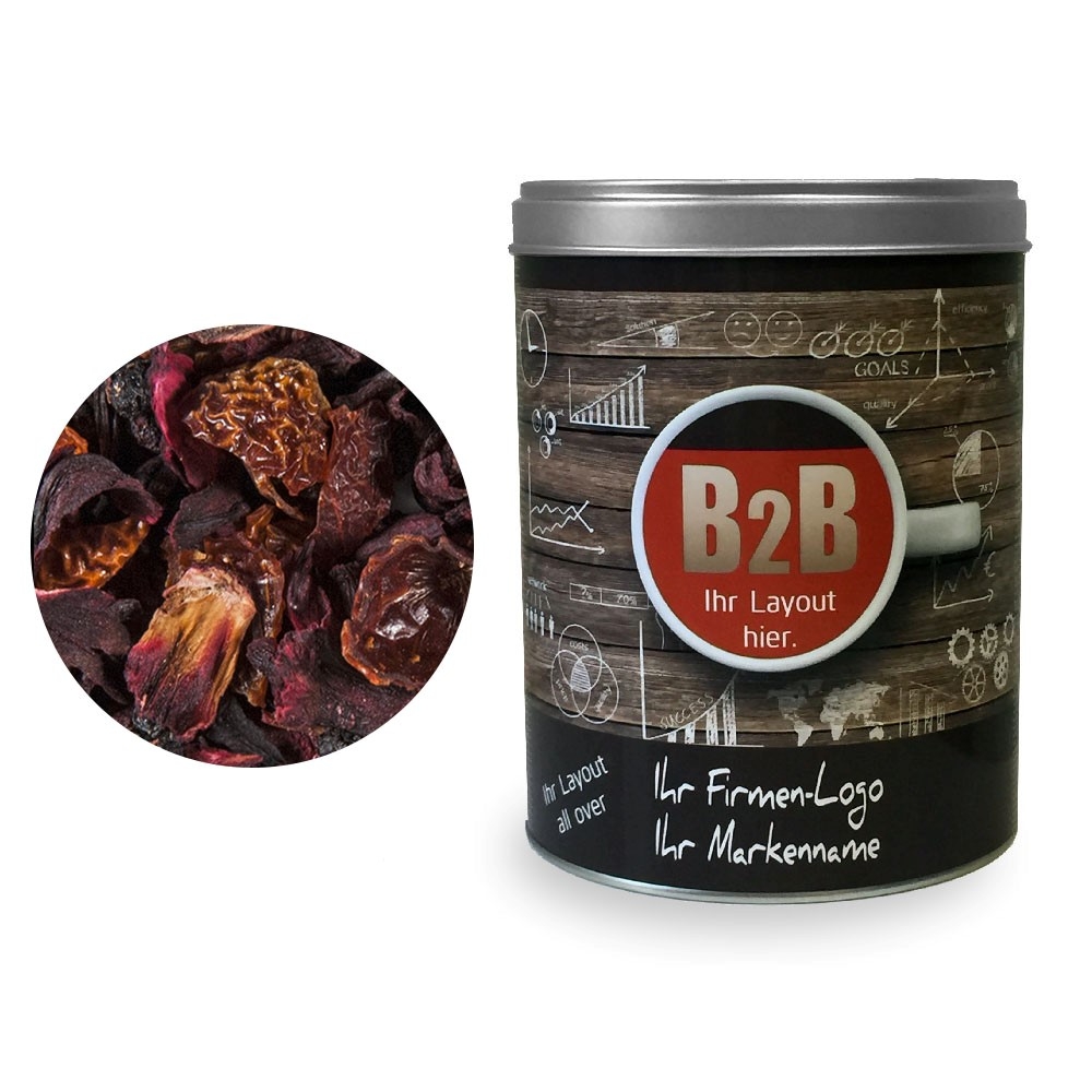 Zutaten: Hibiskusblüten, Papayastücke (Papaya, Zucker) (15 %), Hagebuttenschalen, Apfelstücke, Hagebutt ...