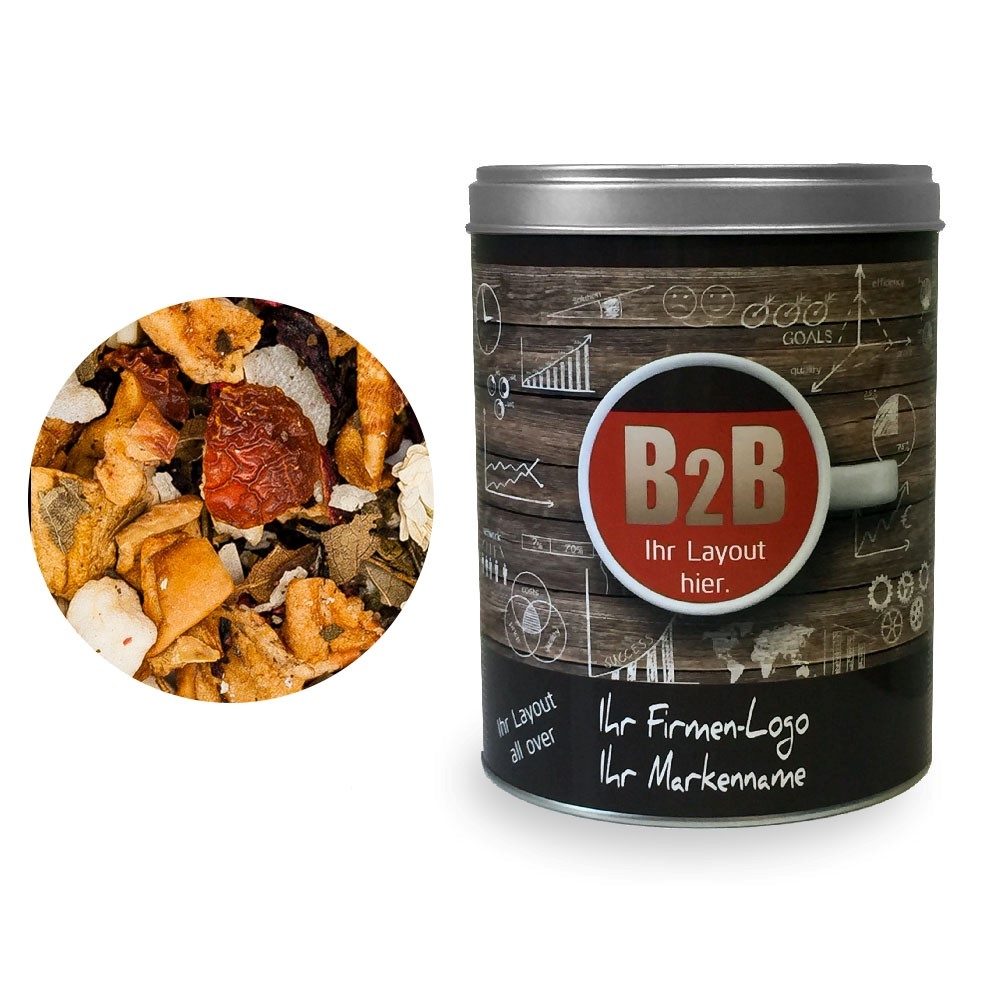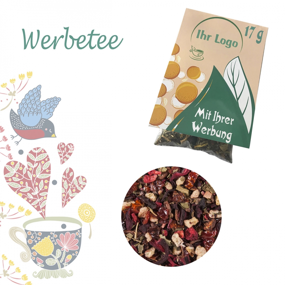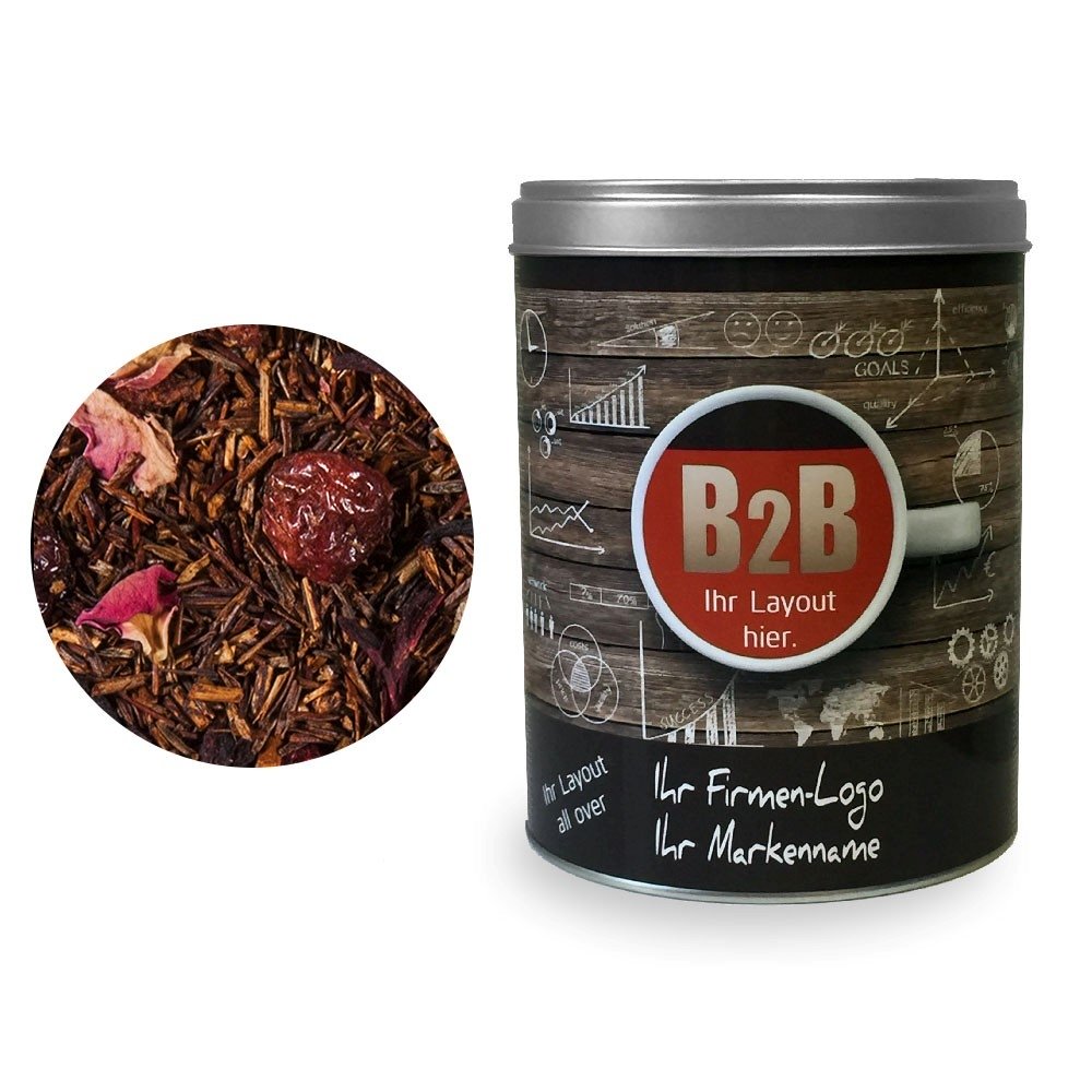 Artikel-Nr: HLSD150115700Tee als Werbegeschenk aus der YuboFiT® Tee Manufaktur. Edler Pai Mu Tan-Weißtee wird von lieblicher Himbeere umgarnt