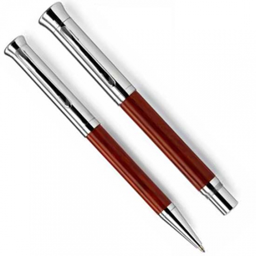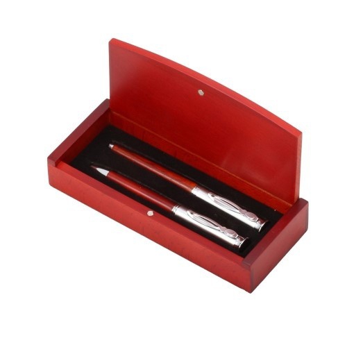 Das exklusive Design und die stilvolle Kombination aus Metall und Holz unterstreichen die Eleganz des Modelles. Der Schaft ist aus lackiertem Holz. Die Clip-Drücker-Einheit und die Spitze sind aus Metall. Der Kugelschreiber enthält eine blaue Mine aus Metall. Im passenden Etui verpackt oder auch solo, vielleicht mit Werbeaufdruck, ist der Kugelschreiber ein exklusives Werbegeschenk für Ihre Kunden.