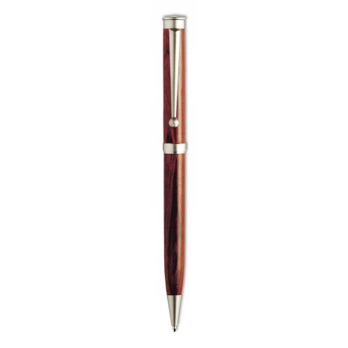 Das exklusive Design und die stilvolle Kombination aus Metall und Holz unterstreichen die Eleganz des Modelles. Der Schaft ist aus lackiertem Holz. Die Clip-Drücker-Einheit und die Spitze sind aus Metall. Der Kugelschreiber enthält eine blaue Großraummine aus Metall. Im passenden Etui verpackt oder auch solo, vielleicht mit Werbeaufdruck, ist der Kugelschreiber ein exklusives Werbegeschenk für Ihre Kunden.