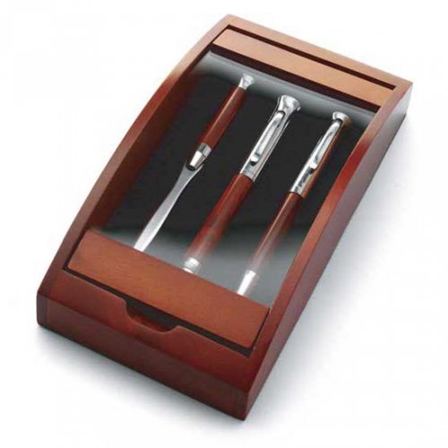 Artikel-Nr: 375104236Das exklusive Design und die stilvolle Kombination aus Metall und Holz unterstreichen die Eleganz des Modelles. Der Schaft ist aus lackiertem Holz. Die Clip-Drücker-Einheit und die Spitze sind aus Metall. Der Kugelschreiber enthält eine blaue Mine aus Metall. Im passenden Etui verpackt oder auch solo, vielleicht mit Werbeaufdruck, ist der Kugelschreiber ein exklusives Werbegeschenk für Ihre Kunden.