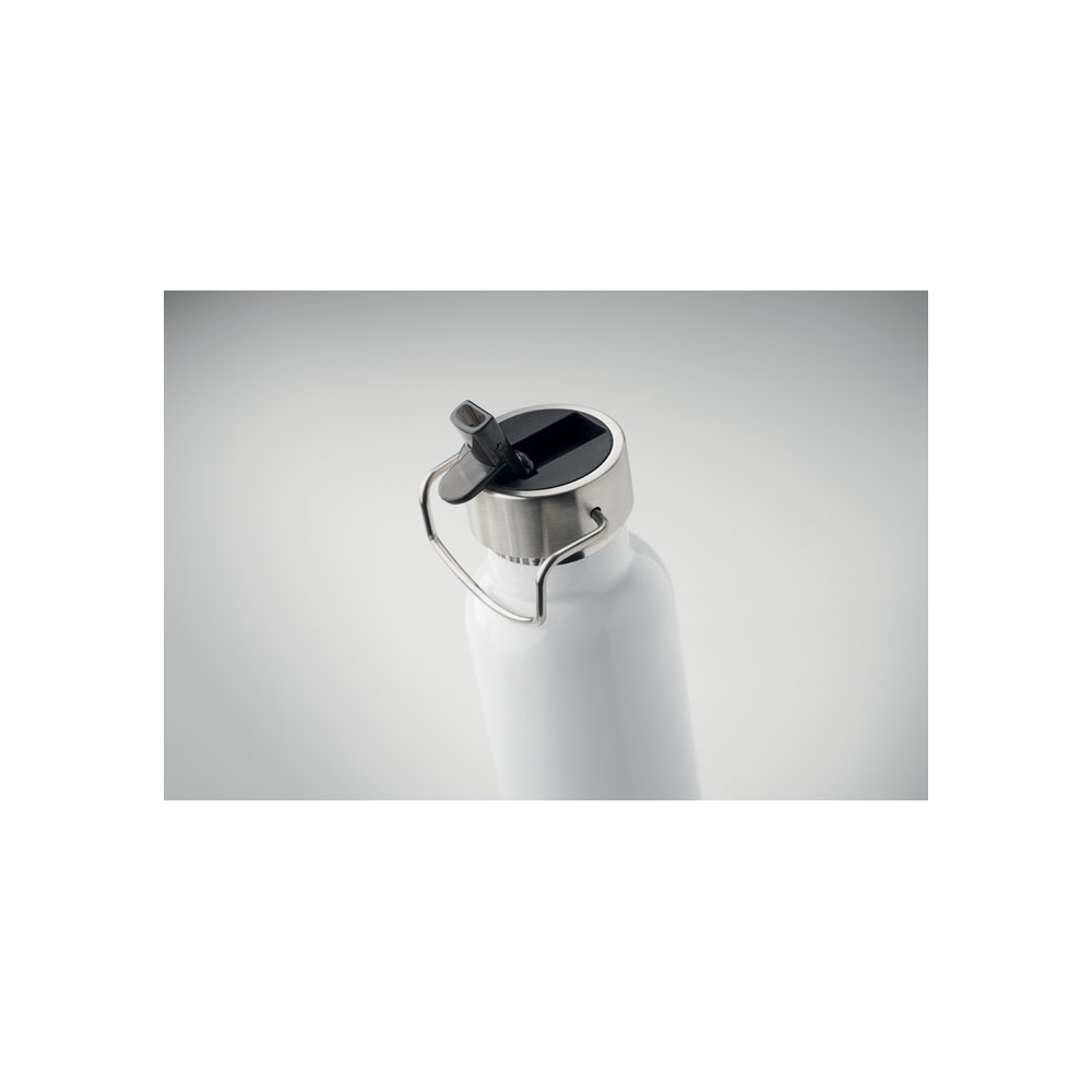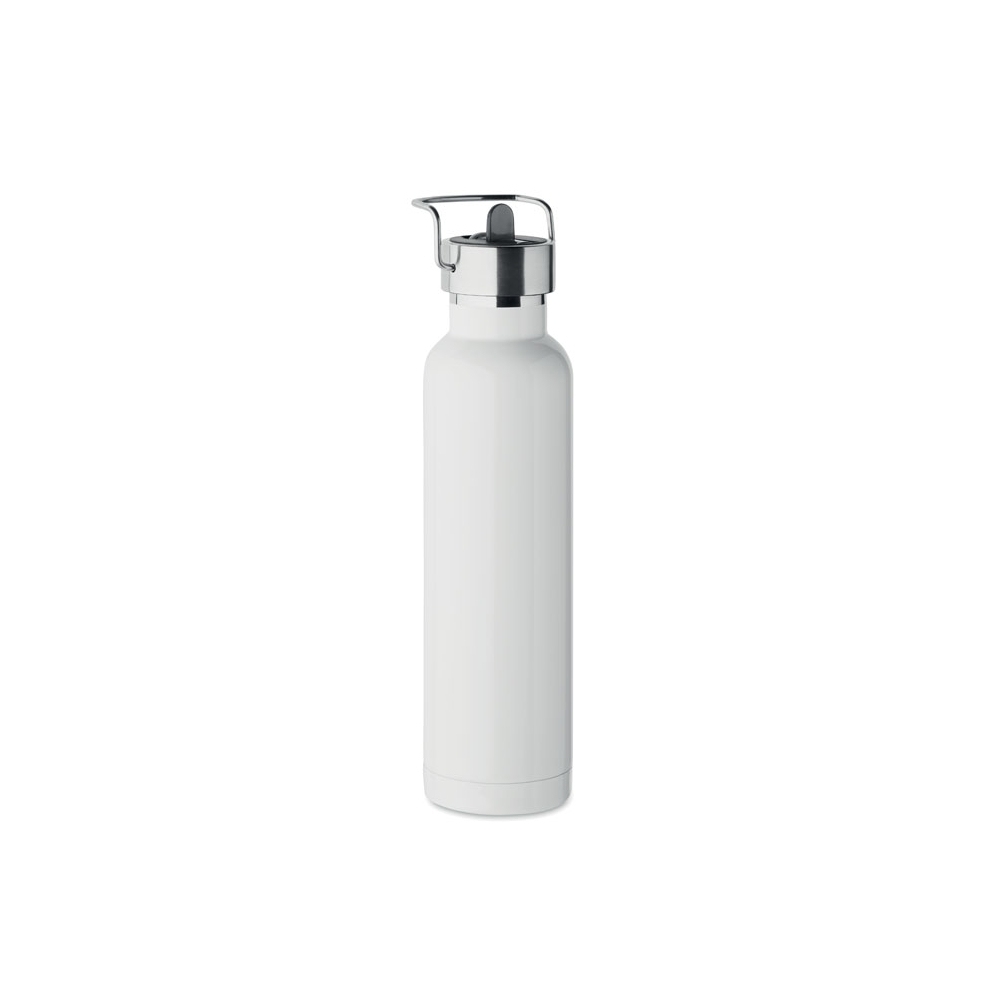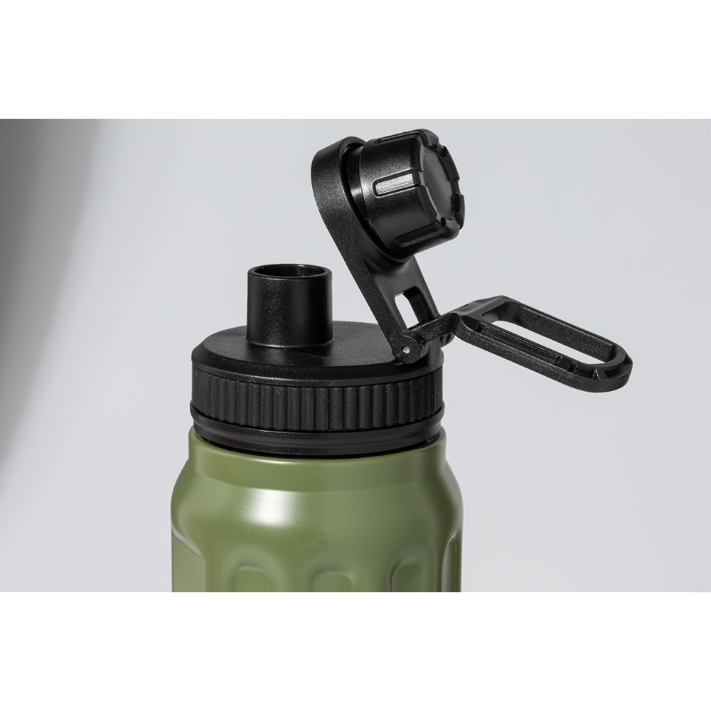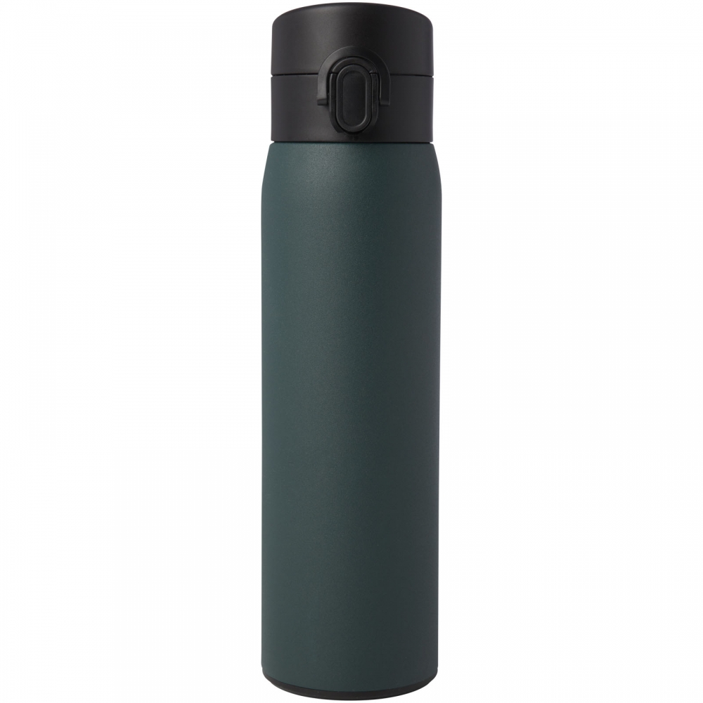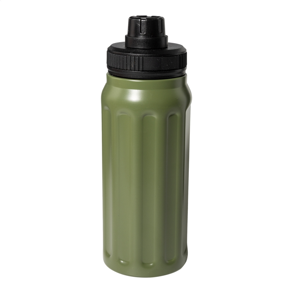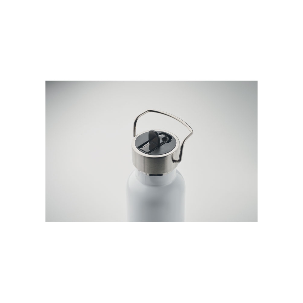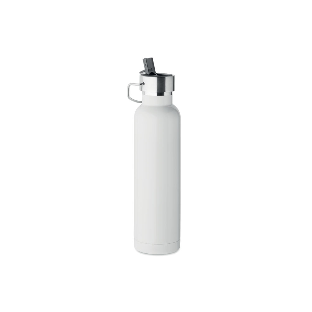 Artikel-Nr: AND800145-07Doppelwandige, isolierte Vakuumflasche aus recyceltem Edelstahl mit vertikalen Rillen. Mit PP-Trinkdeckel und integriertem Tragegriff. Füllmenge: 540 ml.