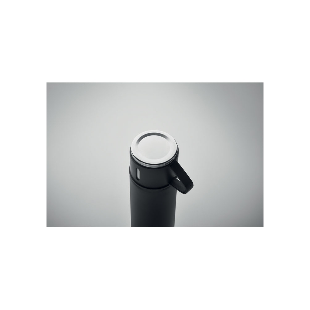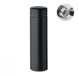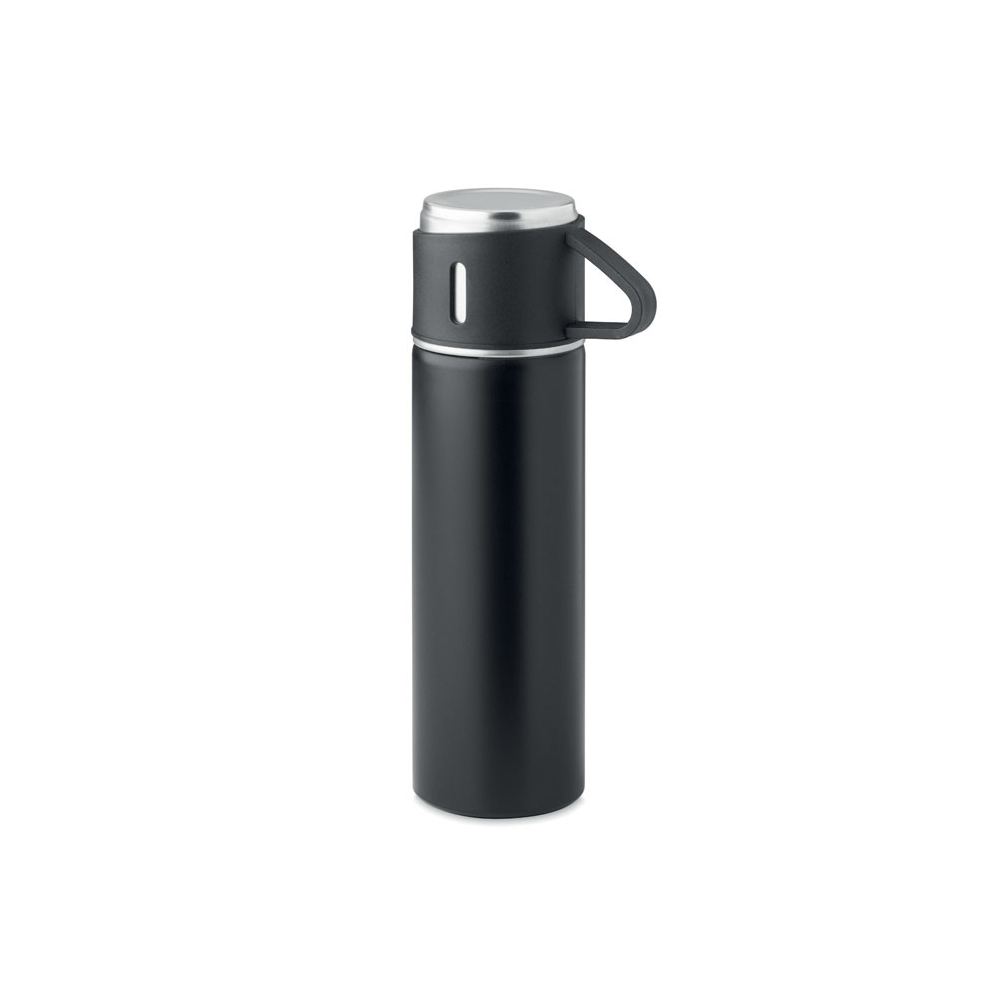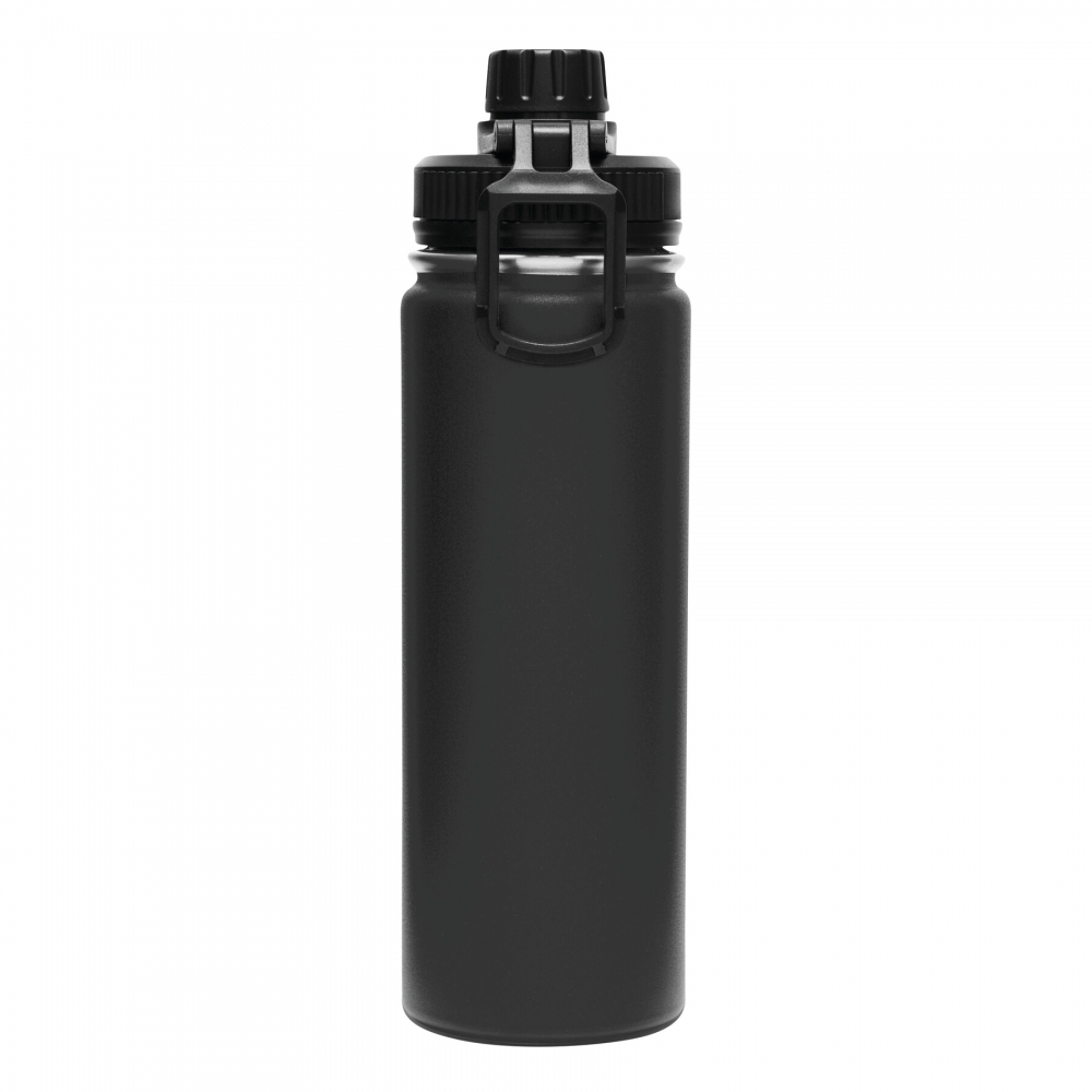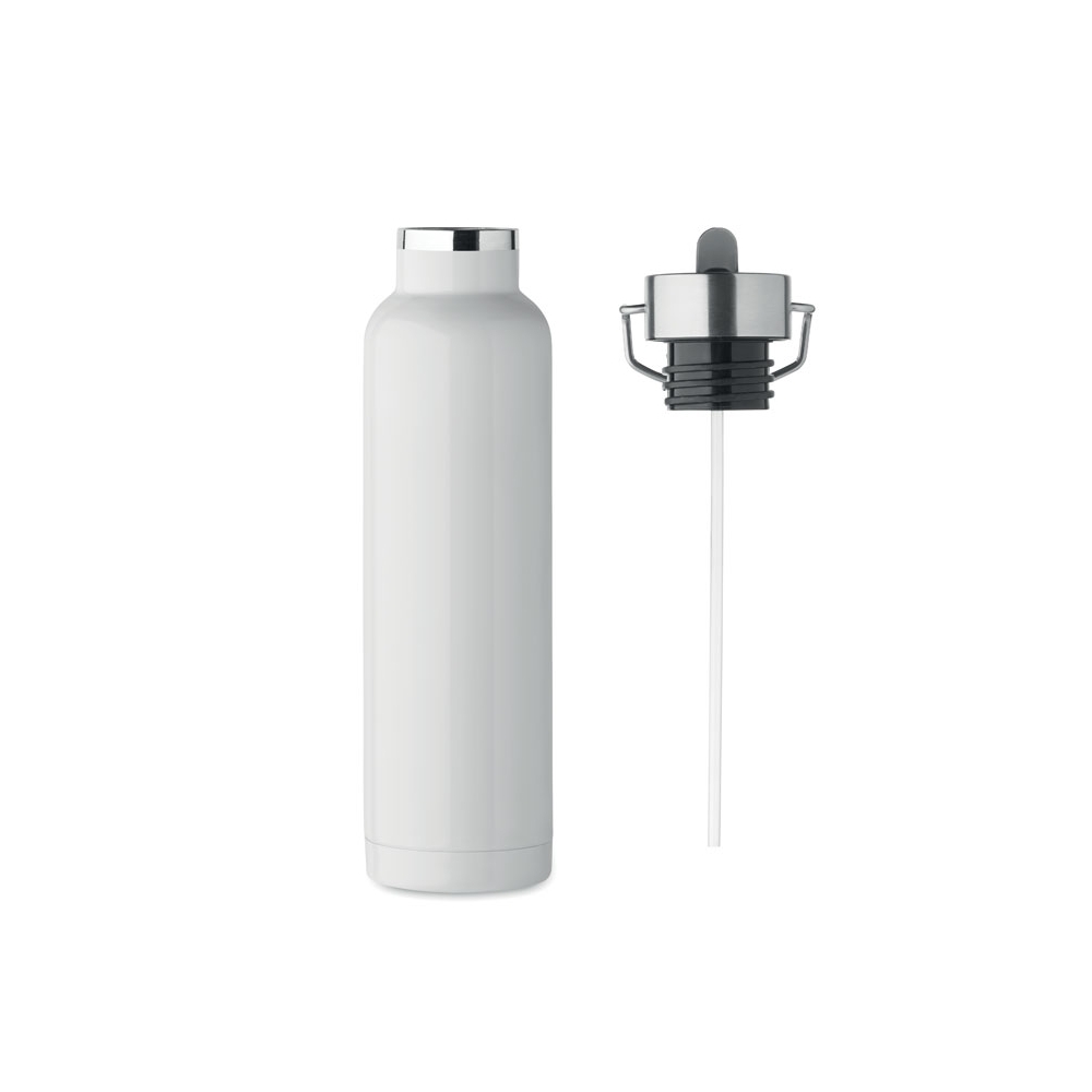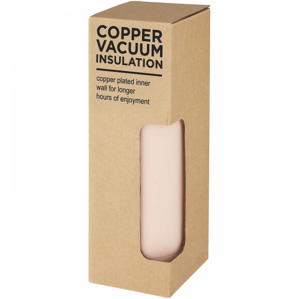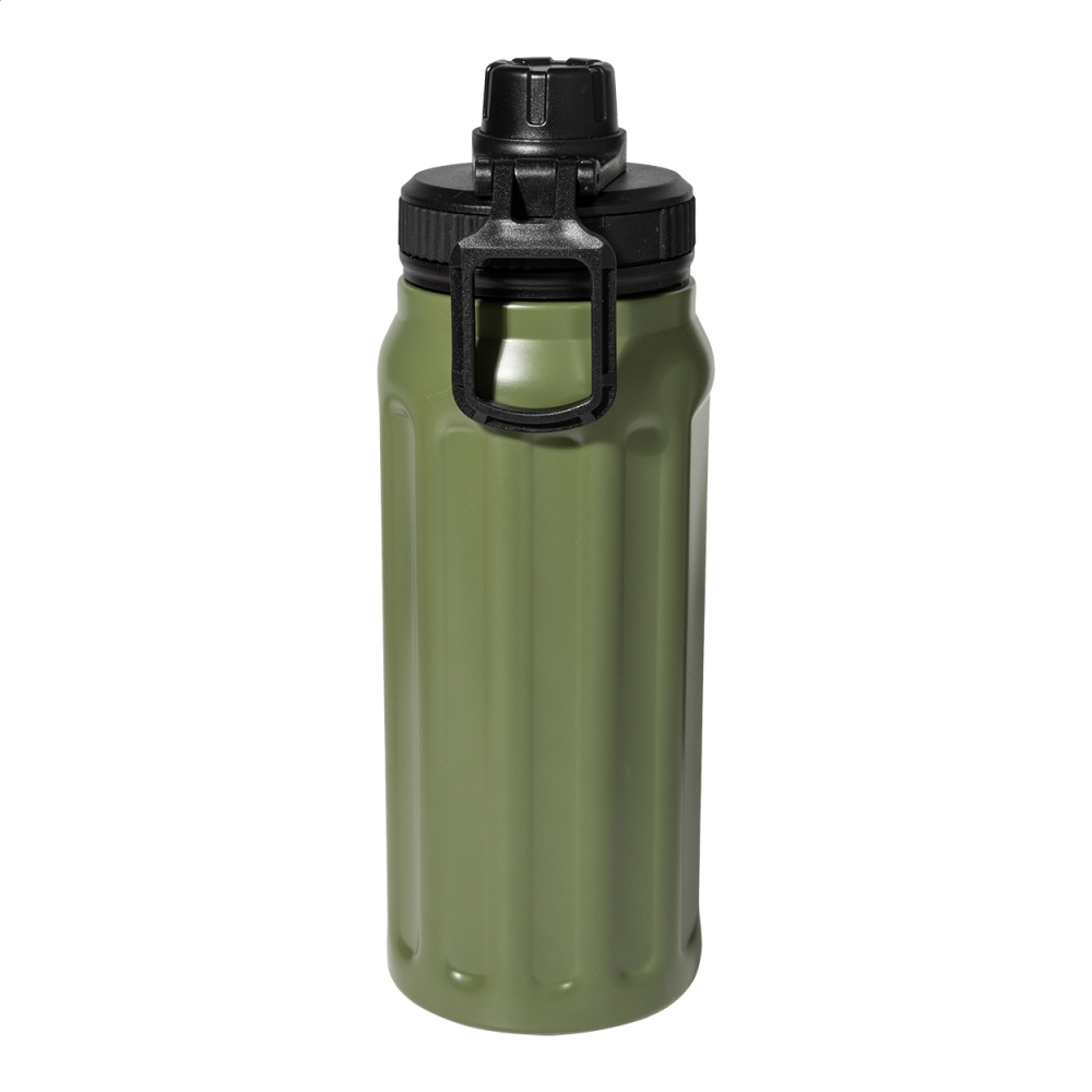 Artikel-Nr: AND800145-07Doppelwandige, isolierte Vakuumflasche aus recyceltem Edelstahl mit vertikalen Rillen. Mit PP-Trinkdeckel und integriertem Tragegriff. Füllmenge: 540 ml.