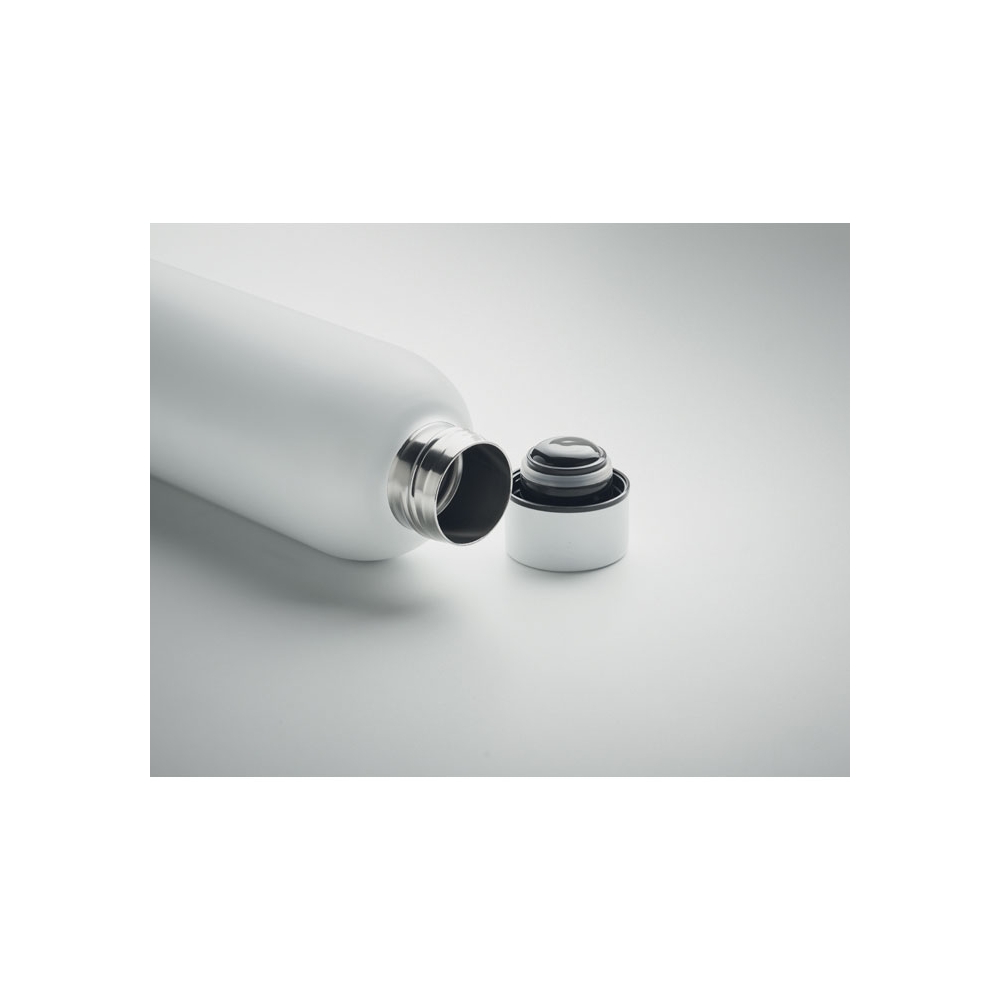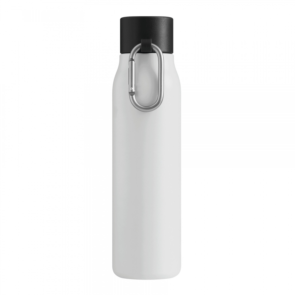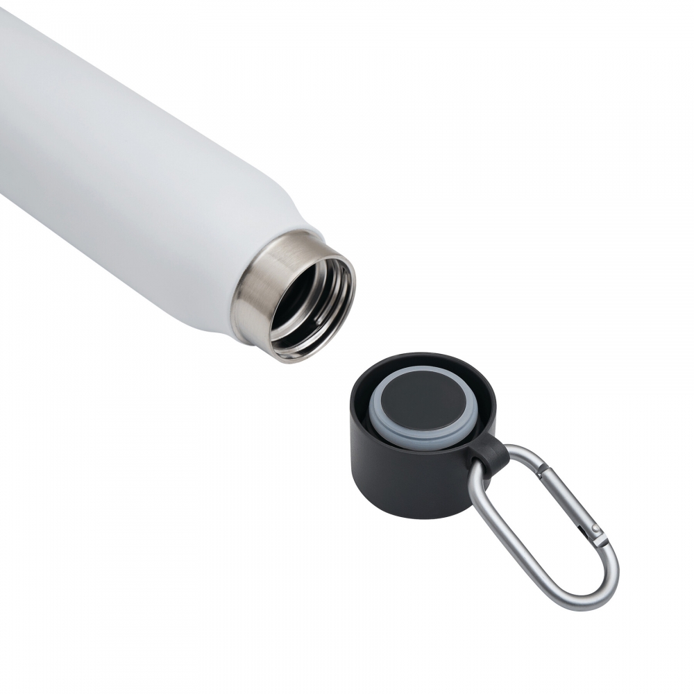 Artikel-Nr: INP56-0304653Vakuum-Isolierflasche ALPINE PEAK, doppelwandig: innen aus recyceltem Edelstahl und außen aus Edelstahl, schwarzer Kunststoff-Deckel mit sicherem Schraubverschluss, Silikon-Dichtring und Karabinerhaken (der Karabiner ist NICHT als Sicherung beim Klettern geeignet), Füllmenge ca. 550 ml, hält ca. 8 Stunden warm und bis zu 12 Stunden kalt, in Box