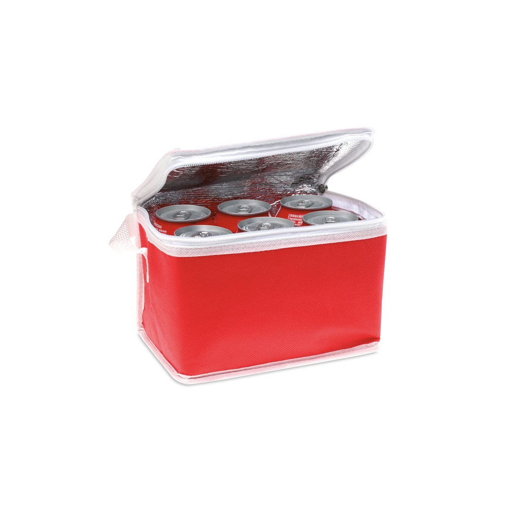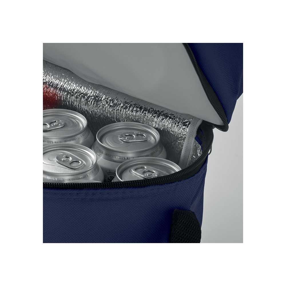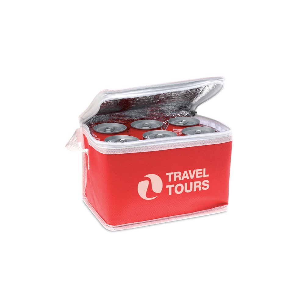 Artikel-Nr: MCM6700406Einfache Kühltasche aus Polyester, passend für 6 Getränkedosen (0,33 Liter) mit Trageschlaufe. Ihre Werbung drucken wir oben auf den Deckel mittig.