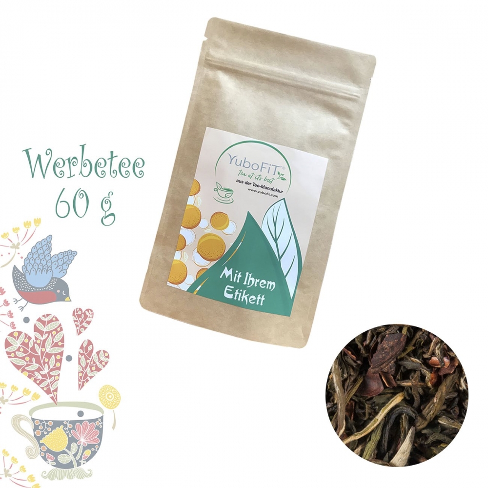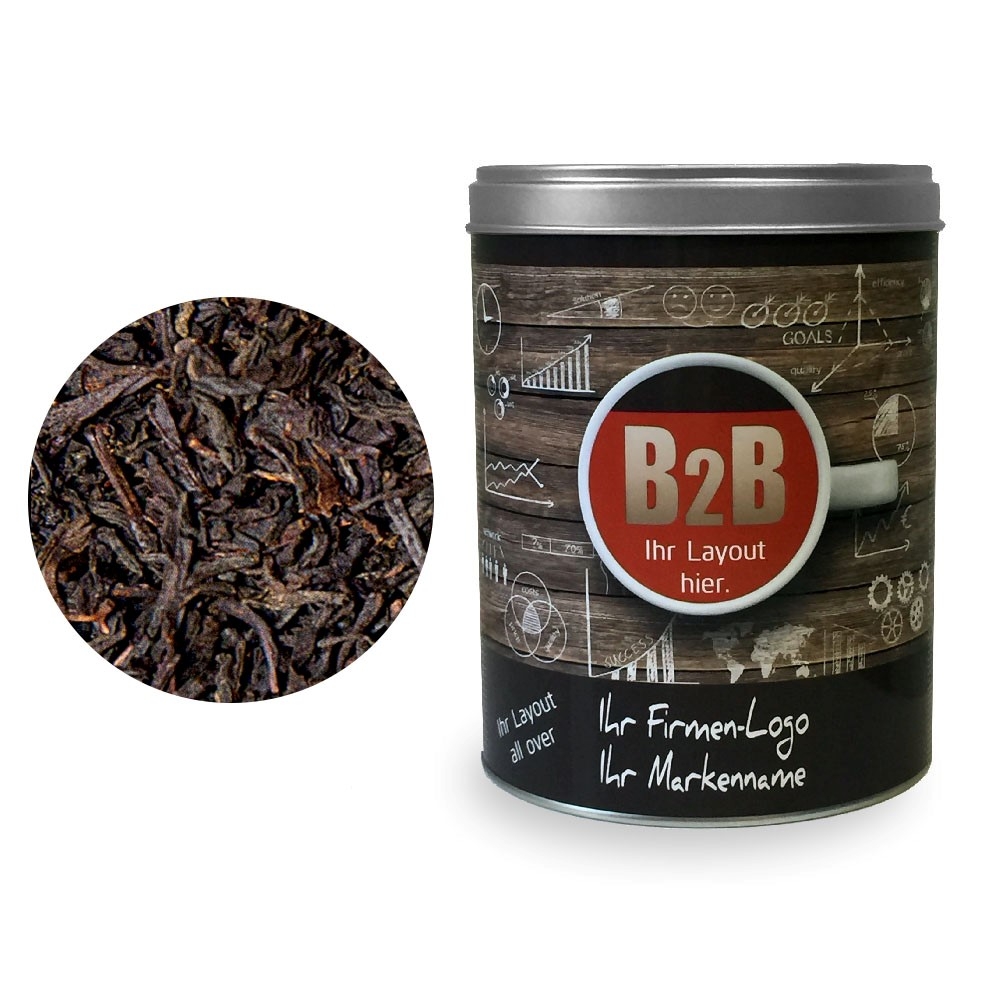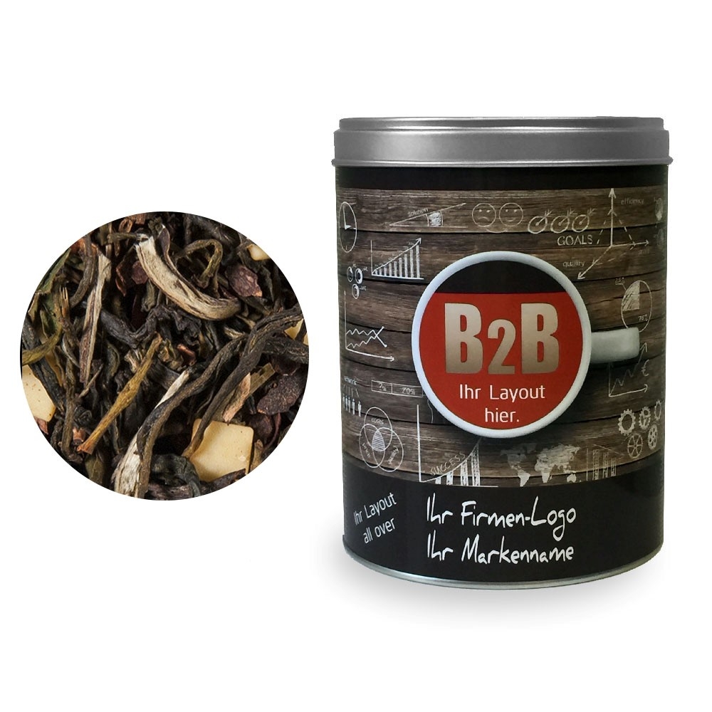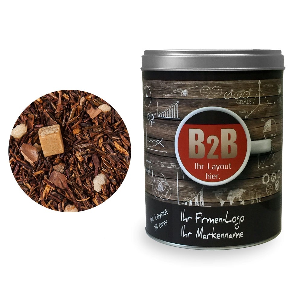 Artikel-Nr: HLSN60105499Tee als Werbegeschenk aus der YuboFiT® Tee Manufaktur. Die herben Töne von Schwarztee und Rum-Aroma werden sanft abgefedert durch eine sahnige und schokoladige Note