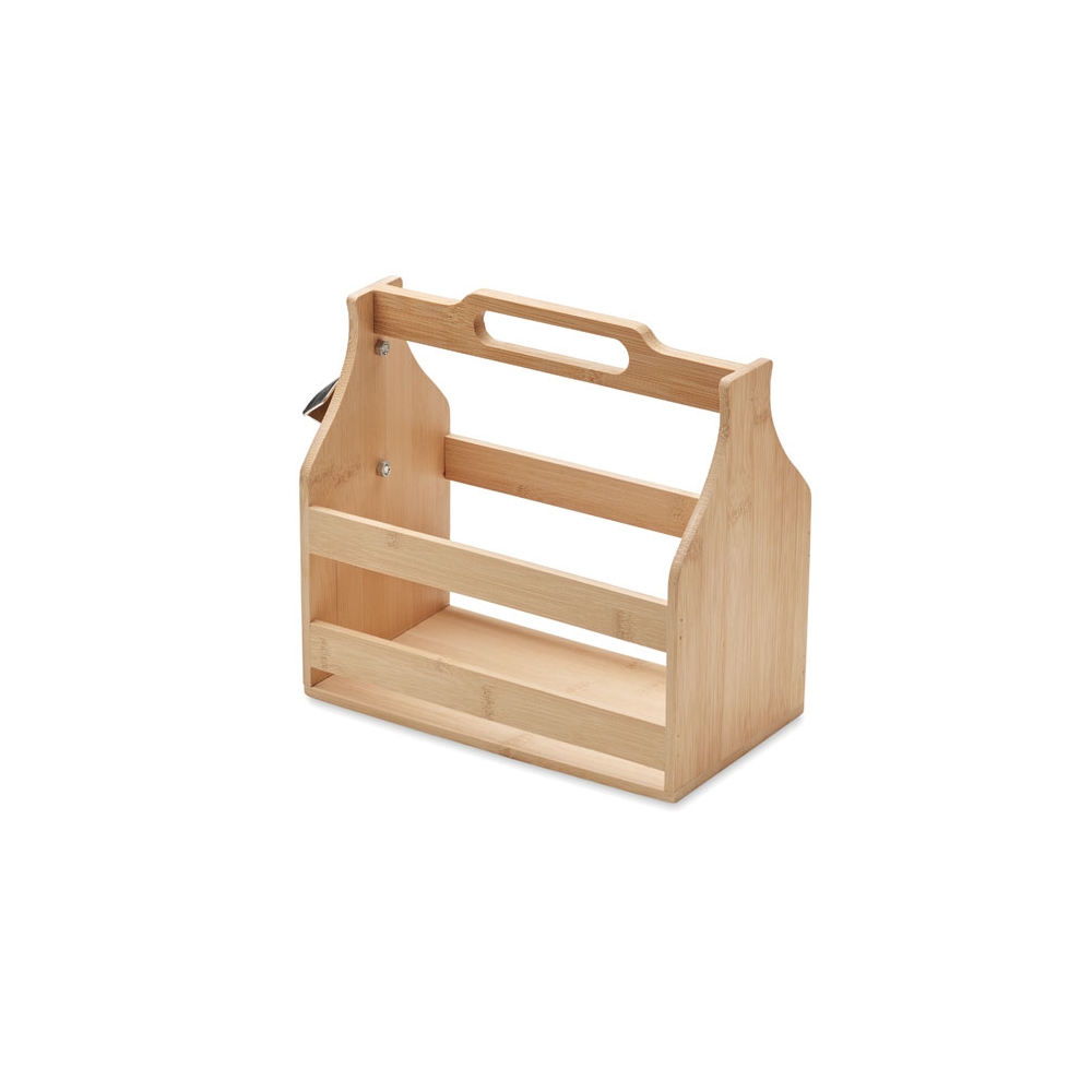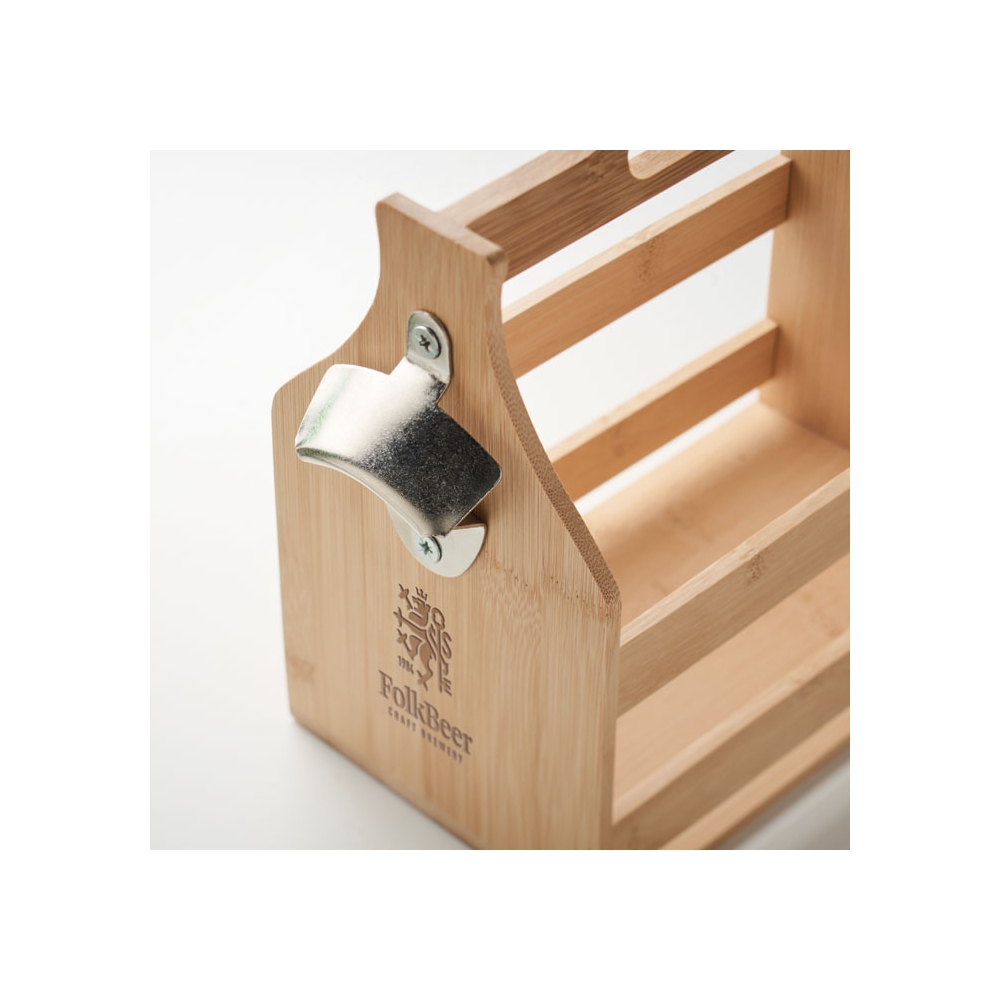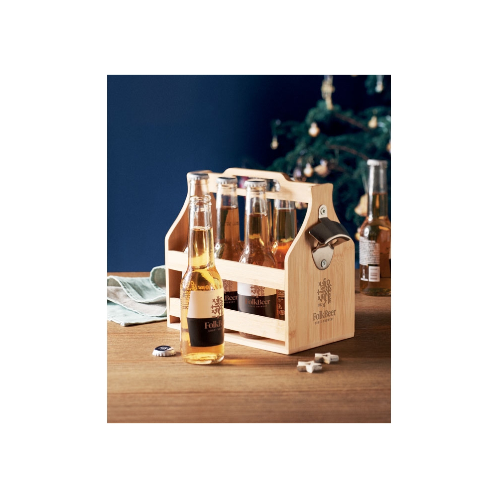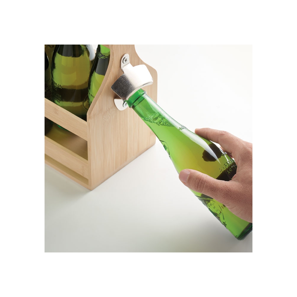 Flaschenträger aus Bambus für 6 Flaschen. Inkl. seitlichem Kapselheber aus Metall. Bambus ist ein natürliches Produkt, es kann daher zu leichten Abweichungen in Farbe, Dekor und Maßen kommen. FSC®-certified | FSC 100%, N5.7, FSC-C213206