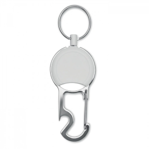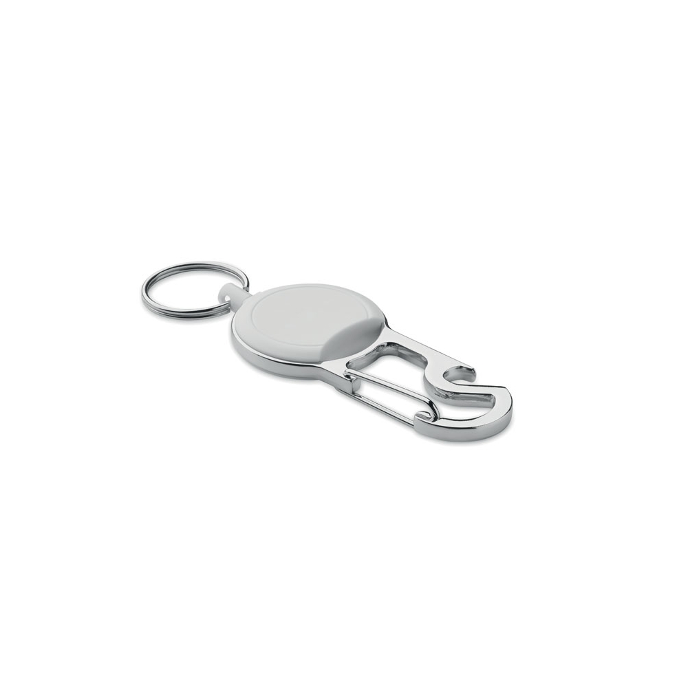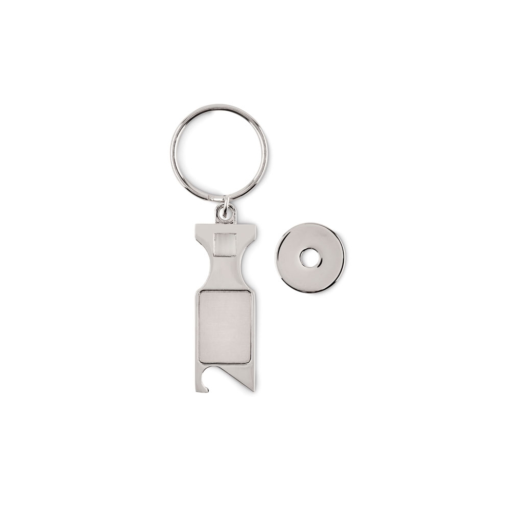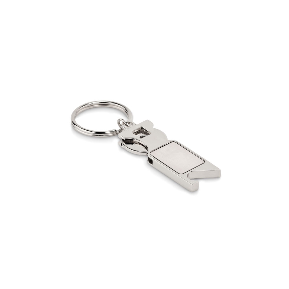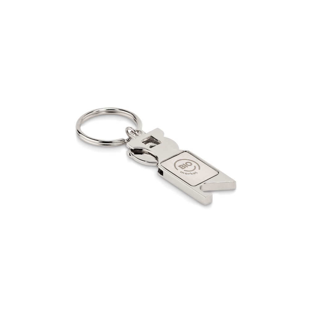 Schlüsselring aus Zinklegierung mit Einkaufswagenchip und Kapselheber.