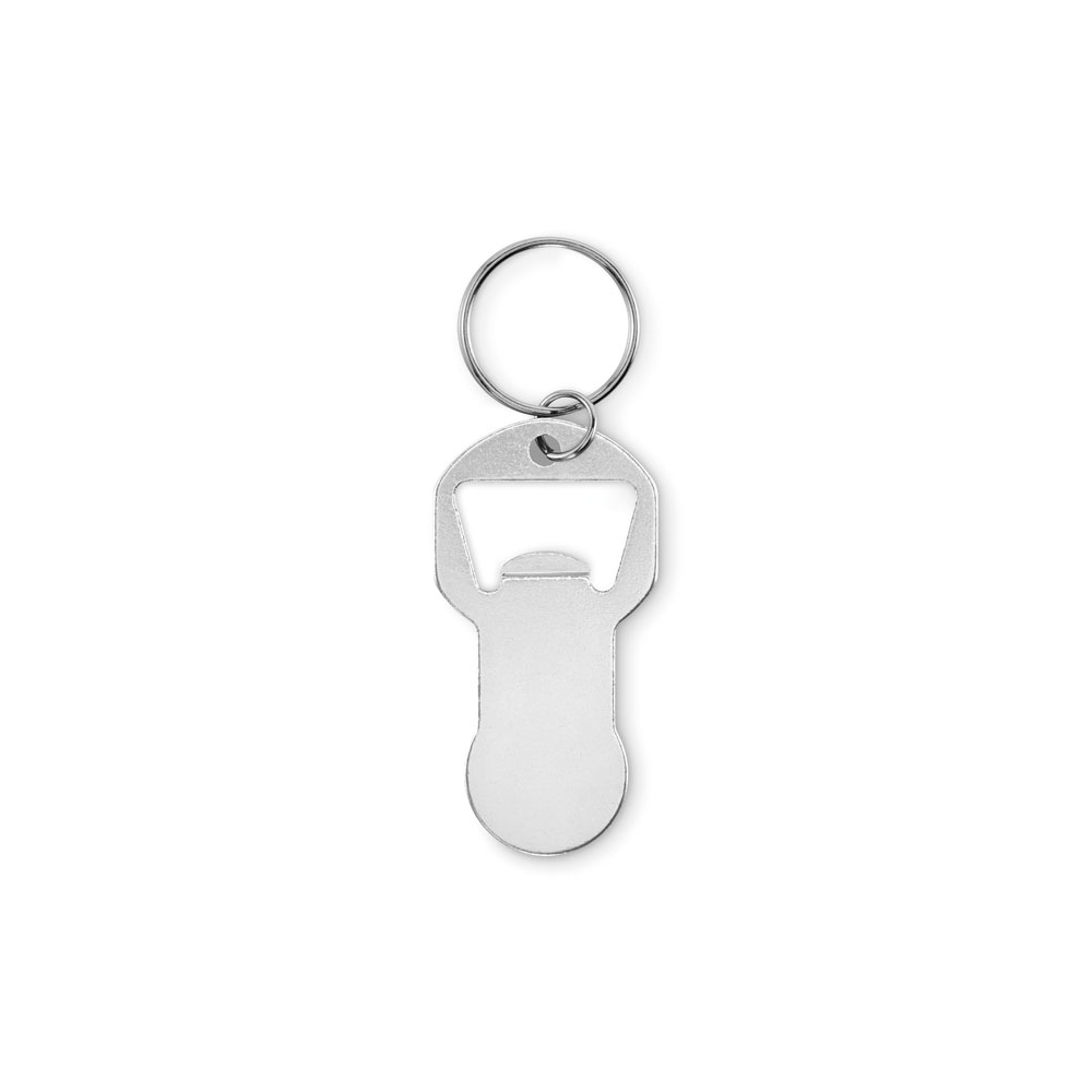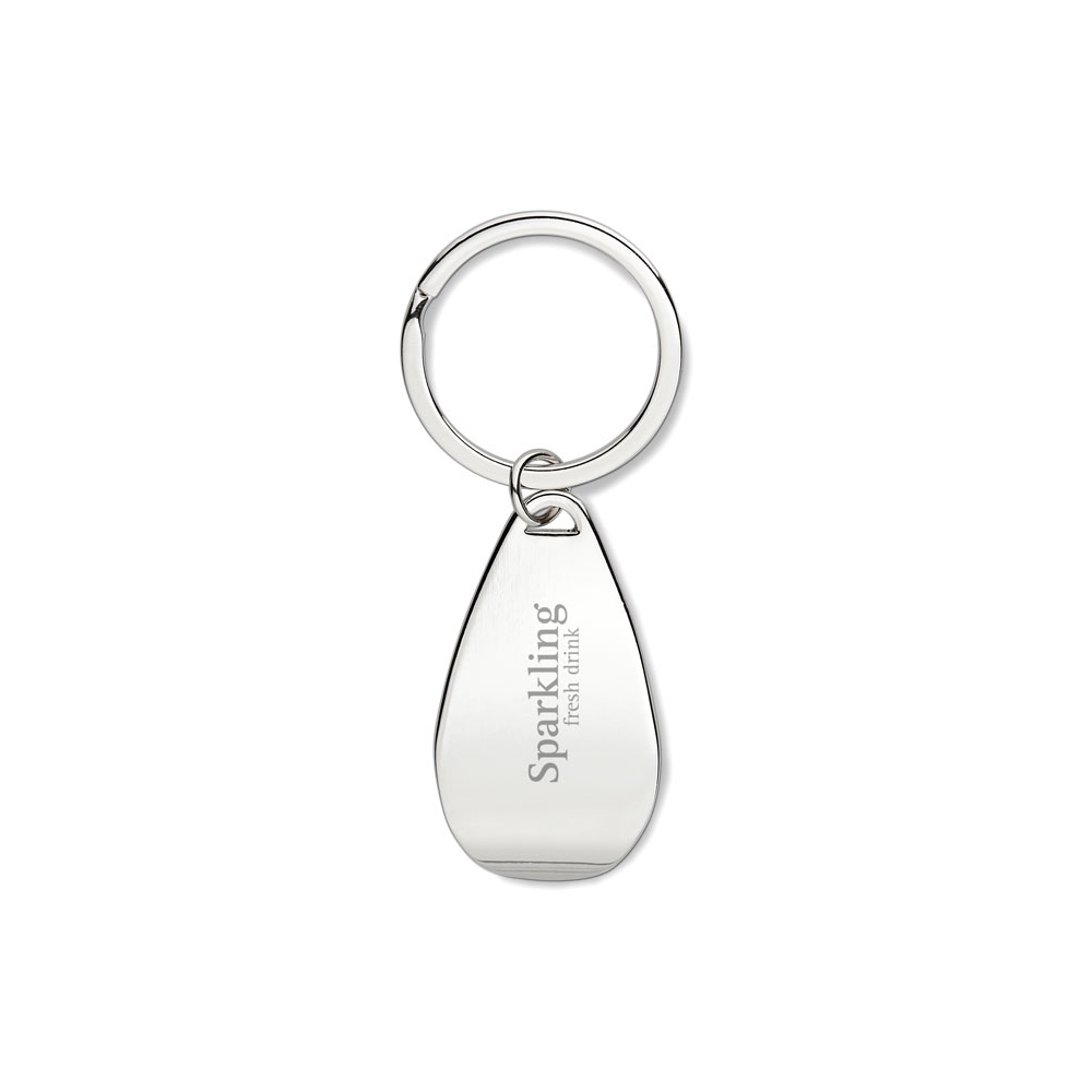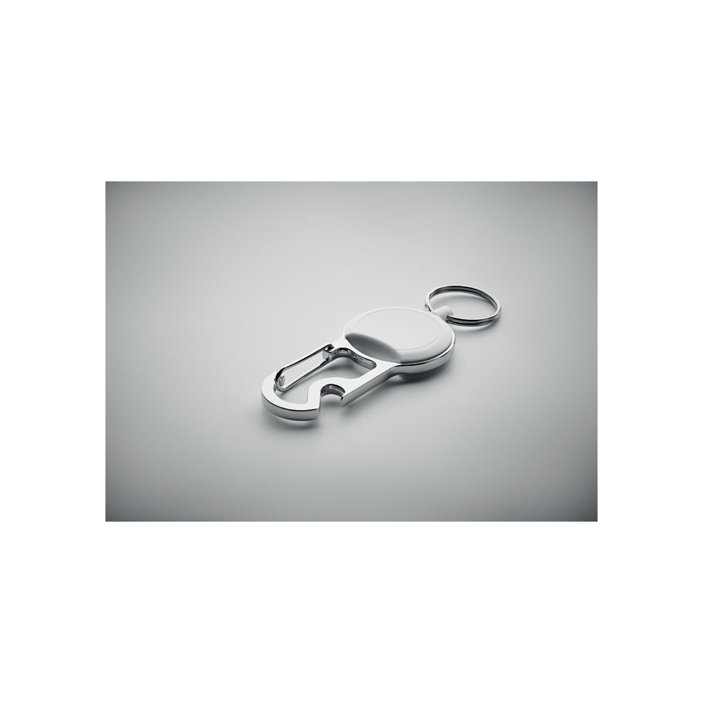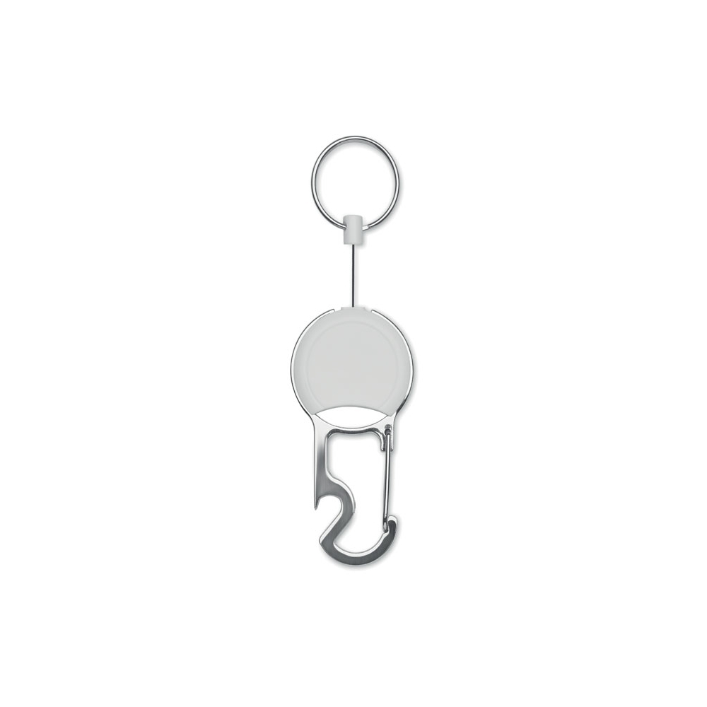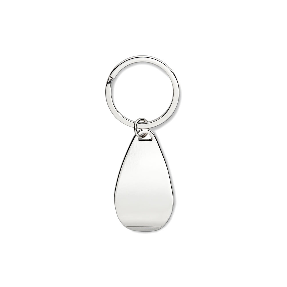 Schlüsselring aus Zinklegierung mit Einkaufswagenchip und Kapselheber.