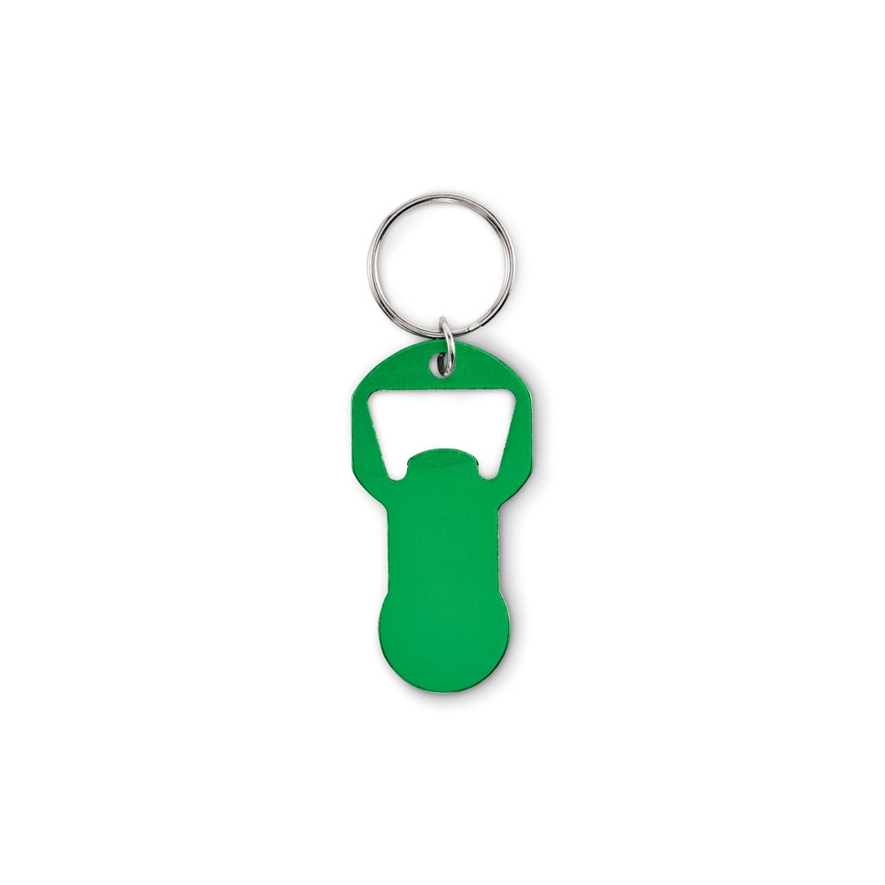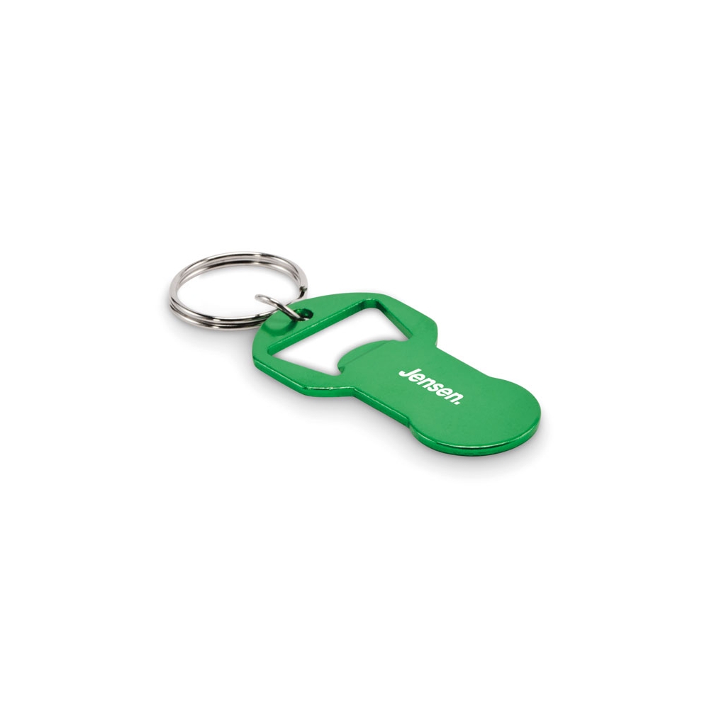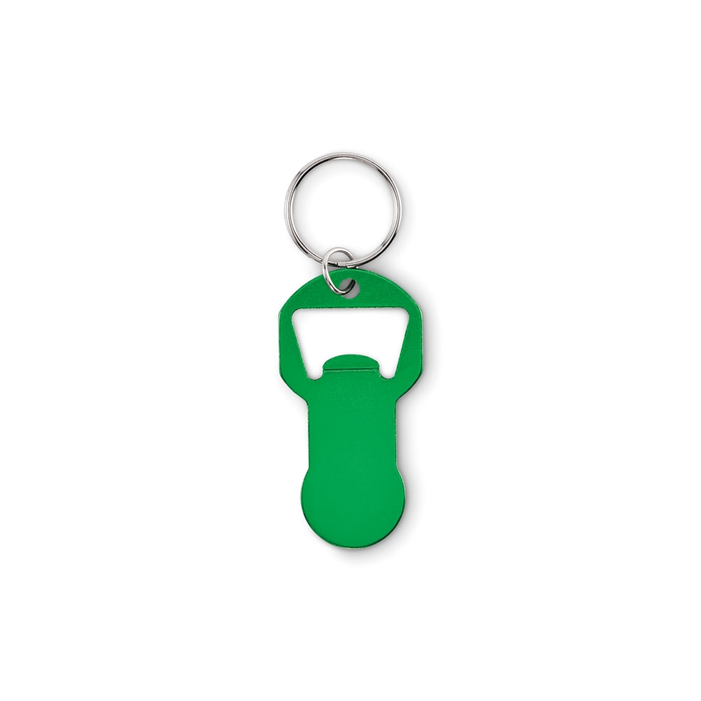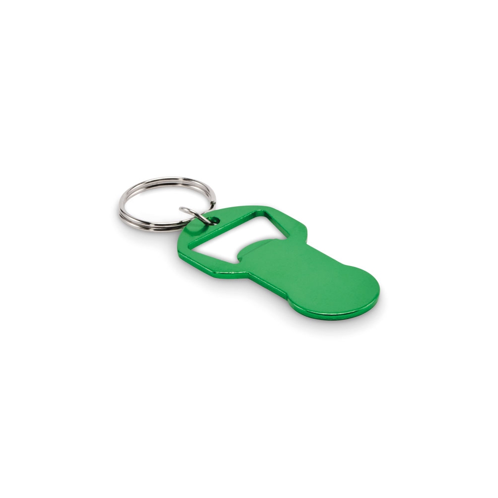Schlüsselring aus Zinklegierung mit Einkaufswagenchip und Kapselheber.