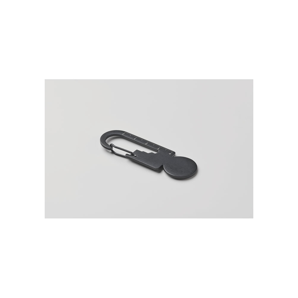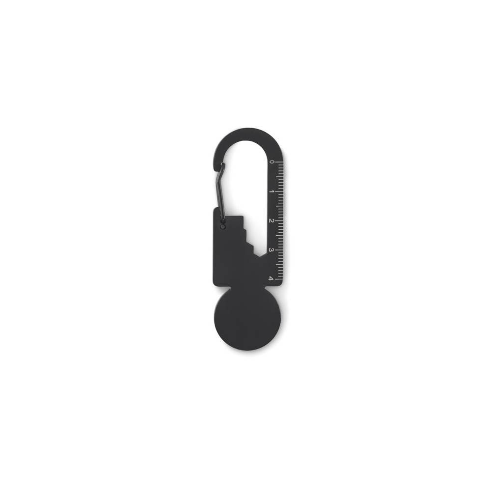 Multifunktionaler Einkaufswagenchip aus recyceltem Edelstahl ( 90% recycelter Edelstahl und 10% Edelstahl). Inkl. Kapselheber, Lineal und Sechskantschlüssel 5 ,5mm, 7mm und 8mm.