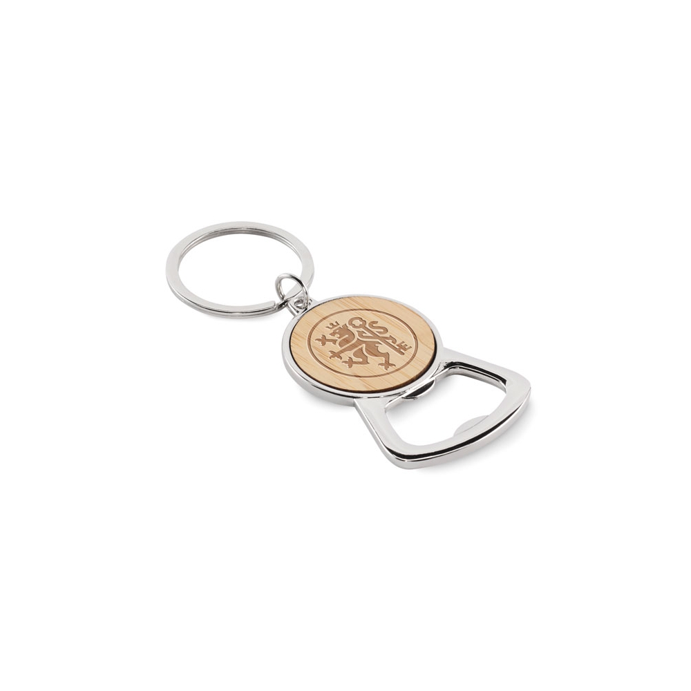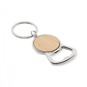 Schlüsselring mit Kapselheber. Metall mit Bambus-Detail.