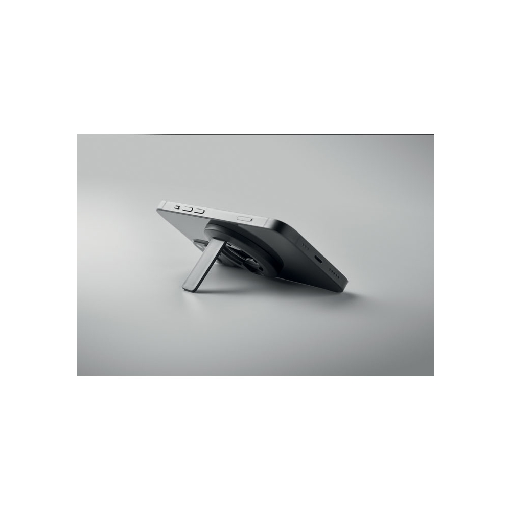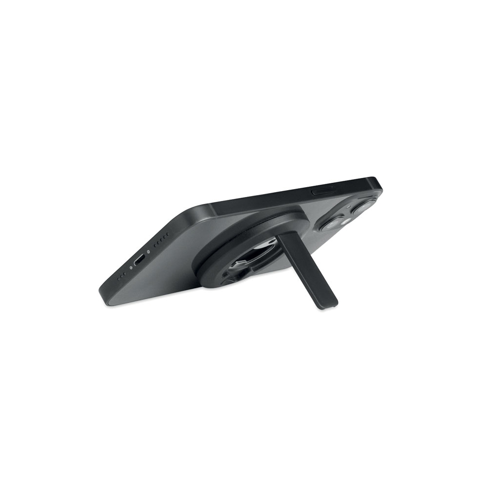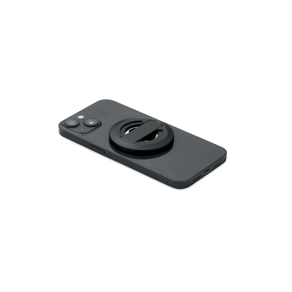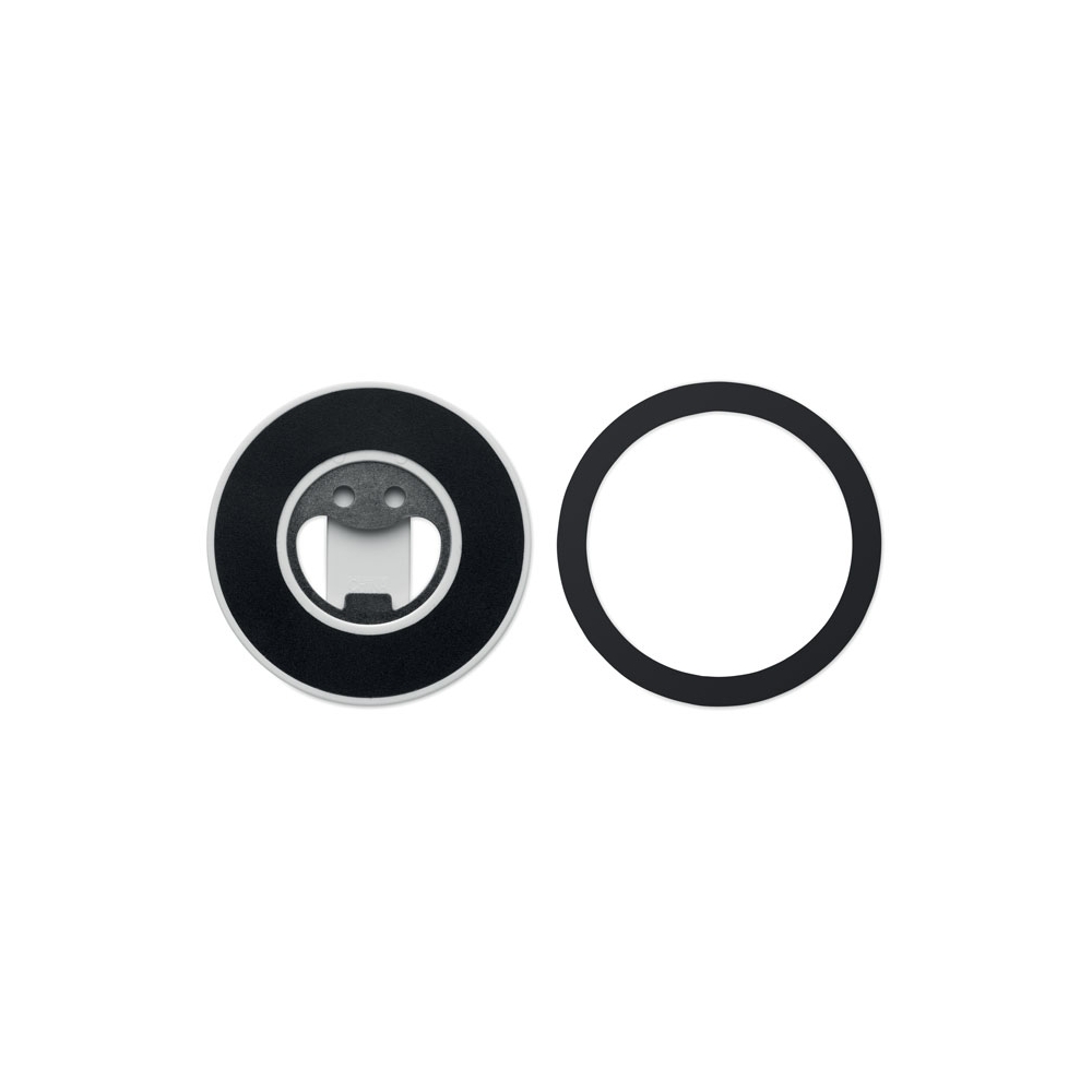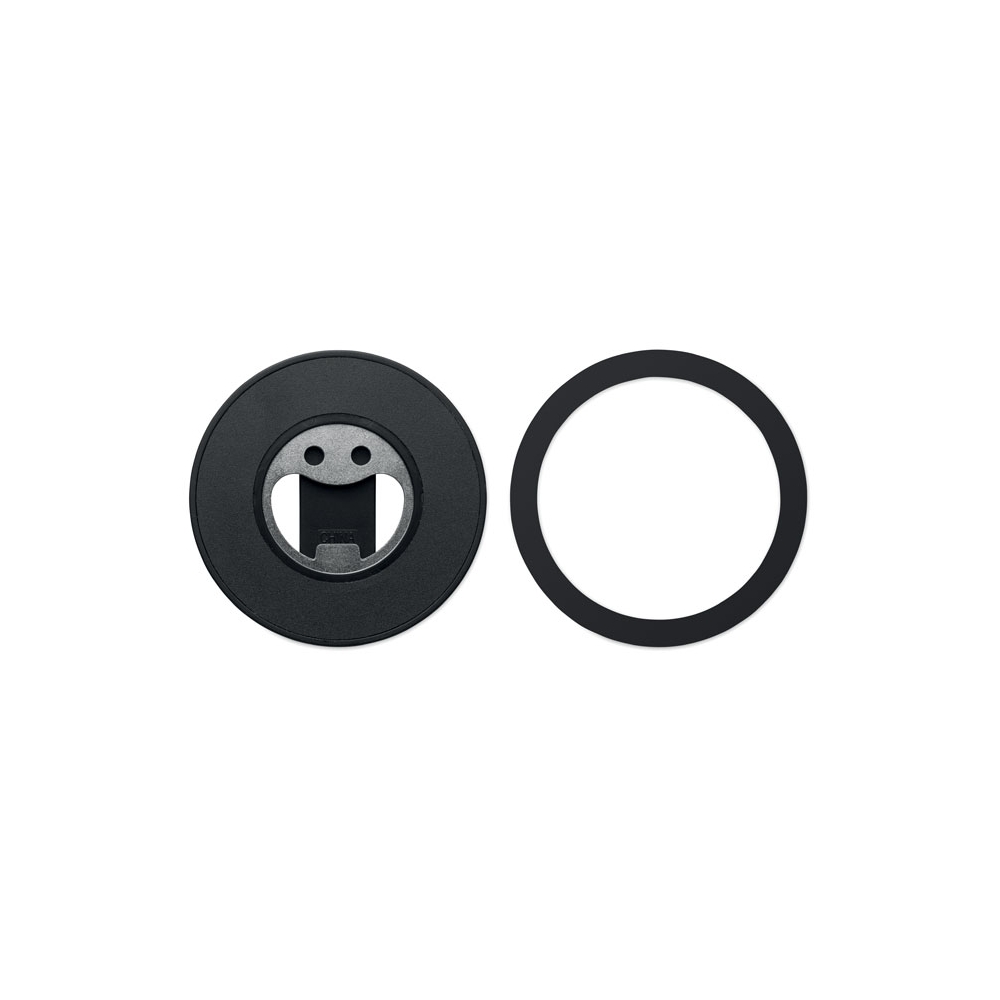 Magnetischer Smartphone-Halter mit Kapselheber. Kompatibel mit iPhone® 12 und neueren Modellen. Inkl. zusätzlichem magnetischen Metallring zum Aufladen anderer nicht-magnetischer, kabellos aufladbarer Smartphones.