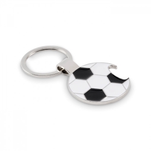 Schlüsselring aus Eisen mit Kapselheber in Form eines Fußballes aus Zinklegierung.