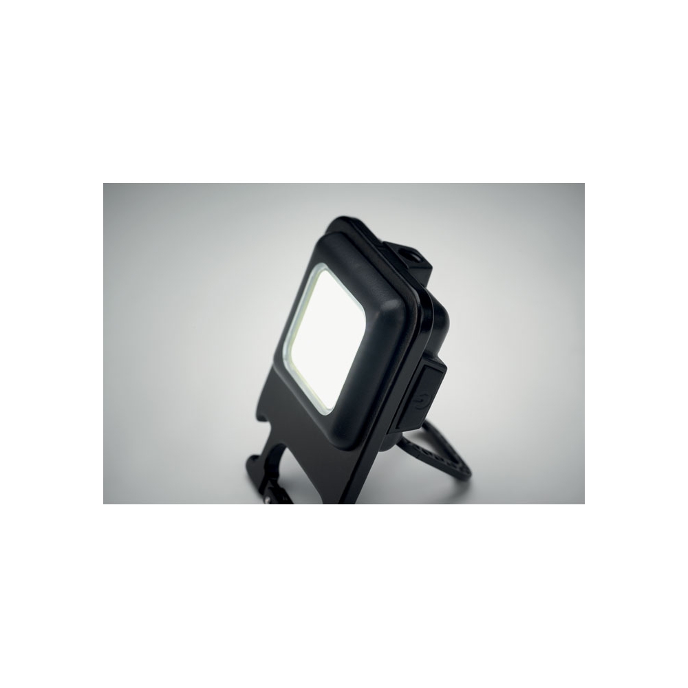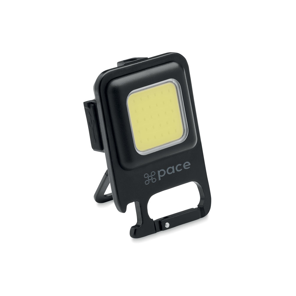 Innovatives, wiederaufladbares 500mAh, Aluminium "Schlüsselanhänger" Worklight mit super hellem 500 Lumen starkem COB Licht. 3 Leuchtmodi 100%, 70% und Strobolicht. Umweltschützend ohne Einwegbatterien, sondern mittels LithiumPolymer Akku wiederaufladbar - Multiuse: Homeworking, Panne, Sport, Haushalt, Alltag durch vielfältige Befestigungsmöglichkeiten per Karabiner am Schlüsselanhänger / Tasche, per Magnet, per integriertem Aufstellmechanismus oder per 6 mm Gewinde auf Stativ / Selfiestick. Ein Kapselheber, ist auch an Board. 2 Leuchtmodi + Blinken, COB 500 Lumen, Leuchtdauer 3h bei 100%, IPX4, ...