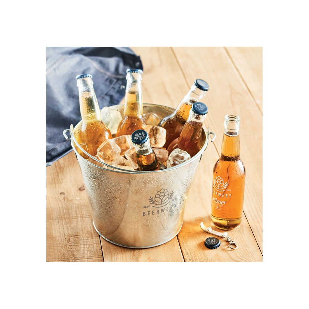 Metalleimer für Bier oder andere Getränke. Tragegriff und Kapselheber. Füllmenge: 4 L.