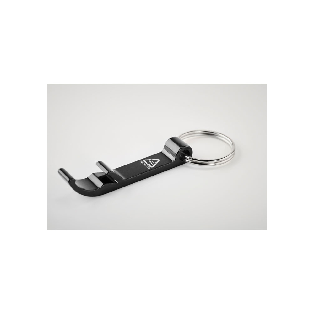 Schlüsselring mit Kapselheber aus recyceltem Aluminium. Glänzendes Finish.