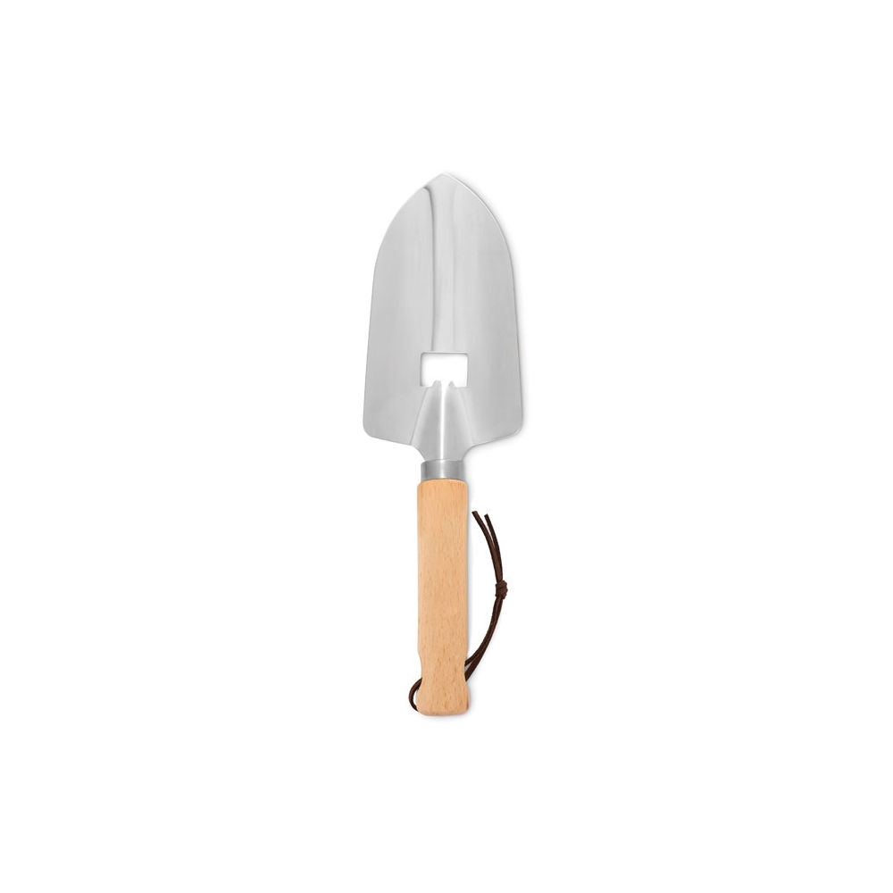 Schaufel mit Kapselheber. Griff aus Holz und Kelle aus Edelstahl. Mit Aufhänger.