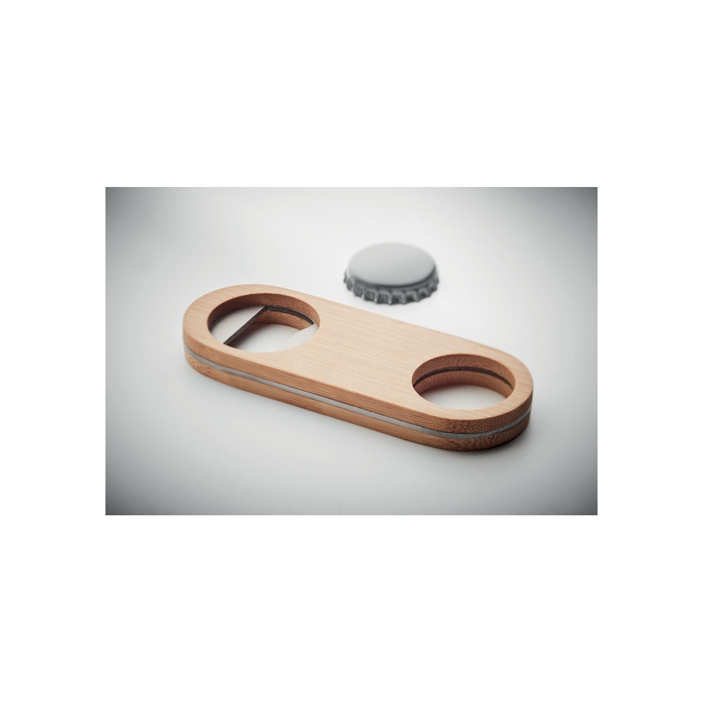 Kapselheber aus Edelstahl mit Oberfläche aus Bambus. Da Bambus ein natürliches Material ist, können Farbton und Maße pro Artikel variieren. Dies kann zu Abweichungen im Ergebnis der Veredlung führen. FSC®-certified | FSC 100%, N5.7, FSC-C213206