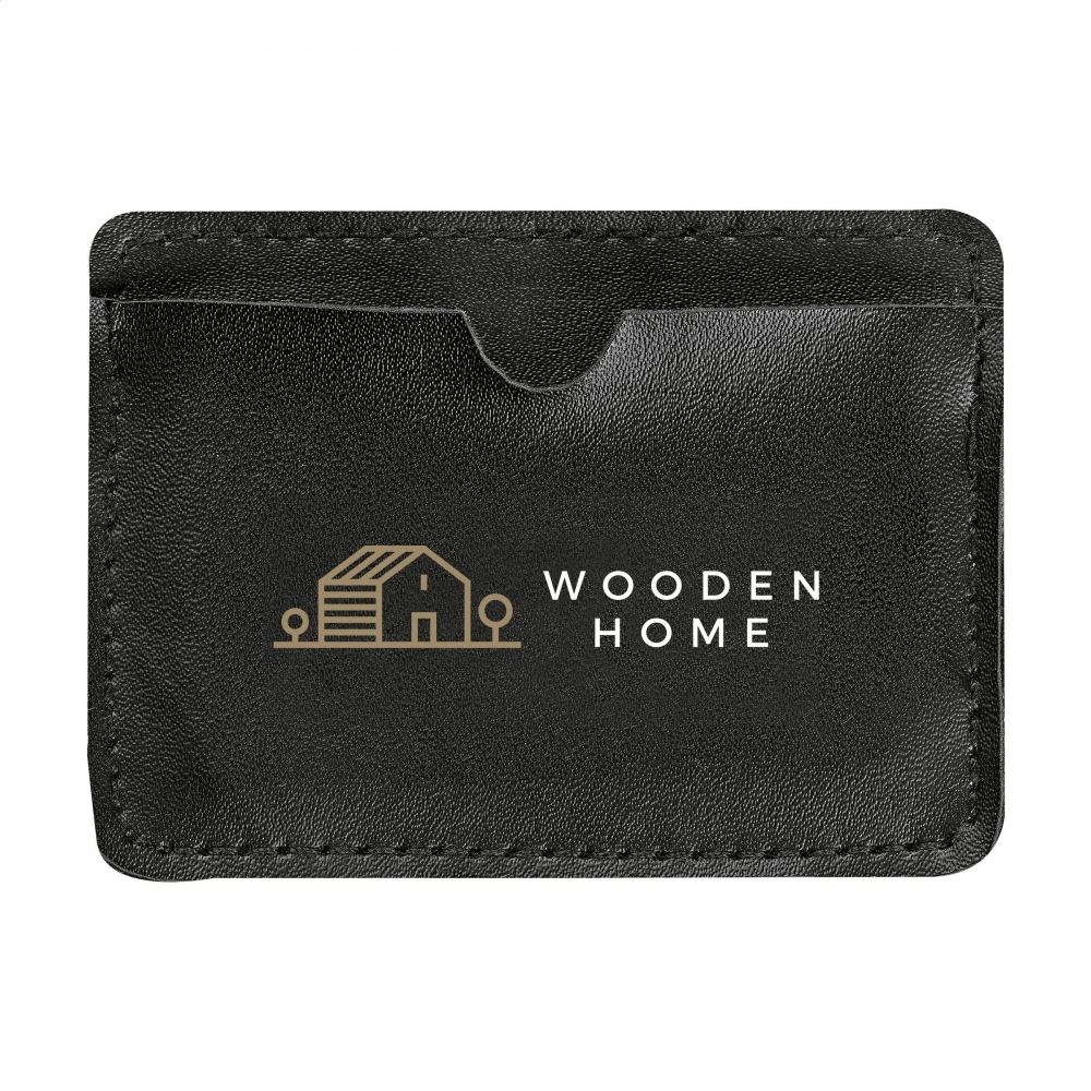 Edel-Shopping Schlüsselanhänger mit Einkaufswagenlöser und markantem PU-Etui für große Werbedrucke VPE 500. Designkarte