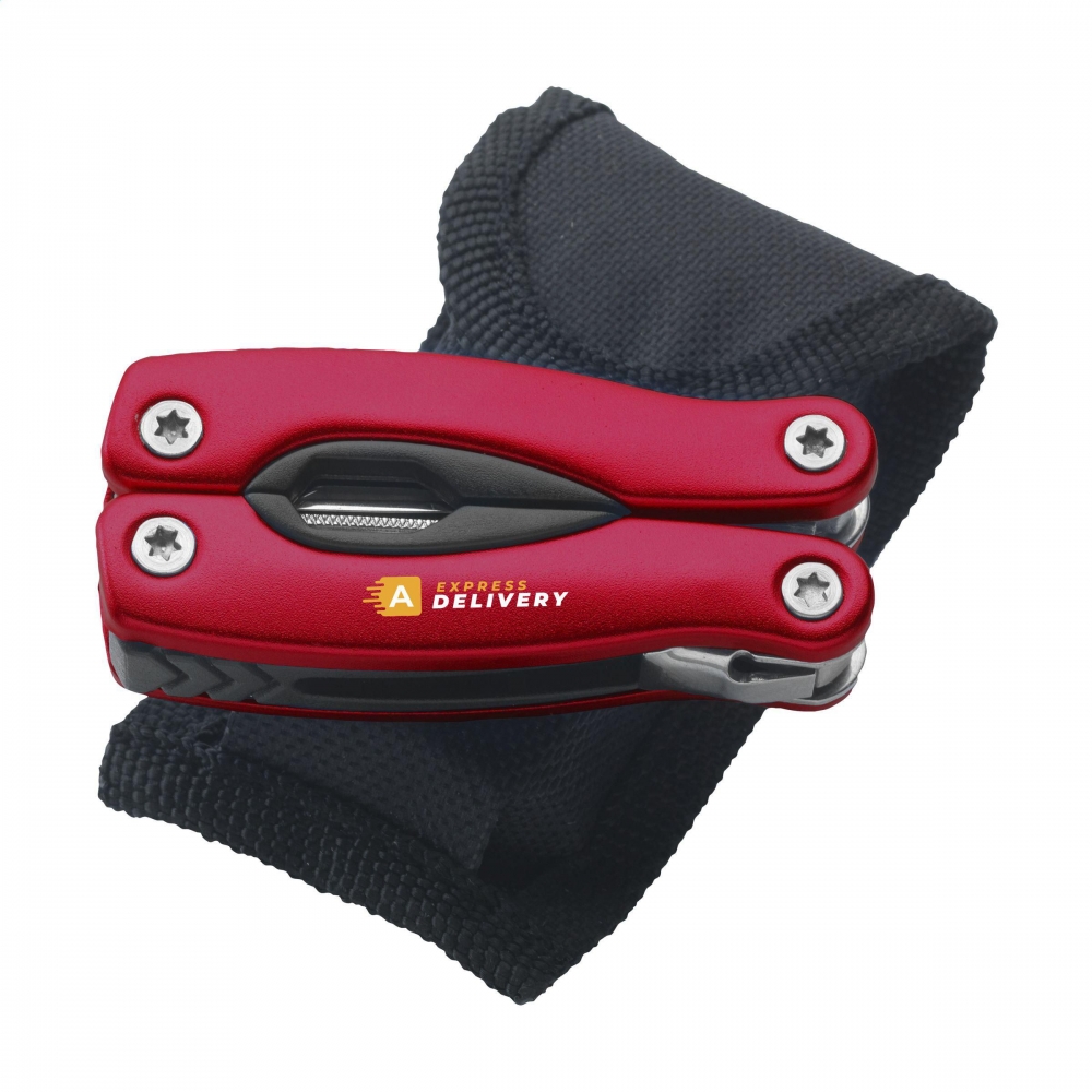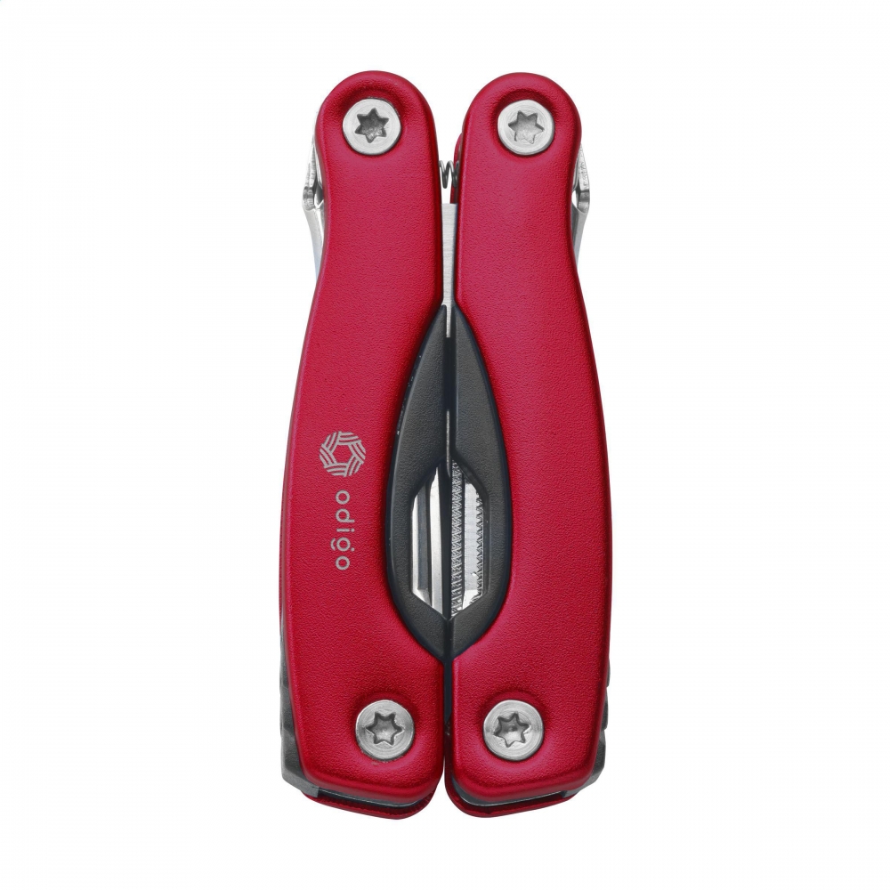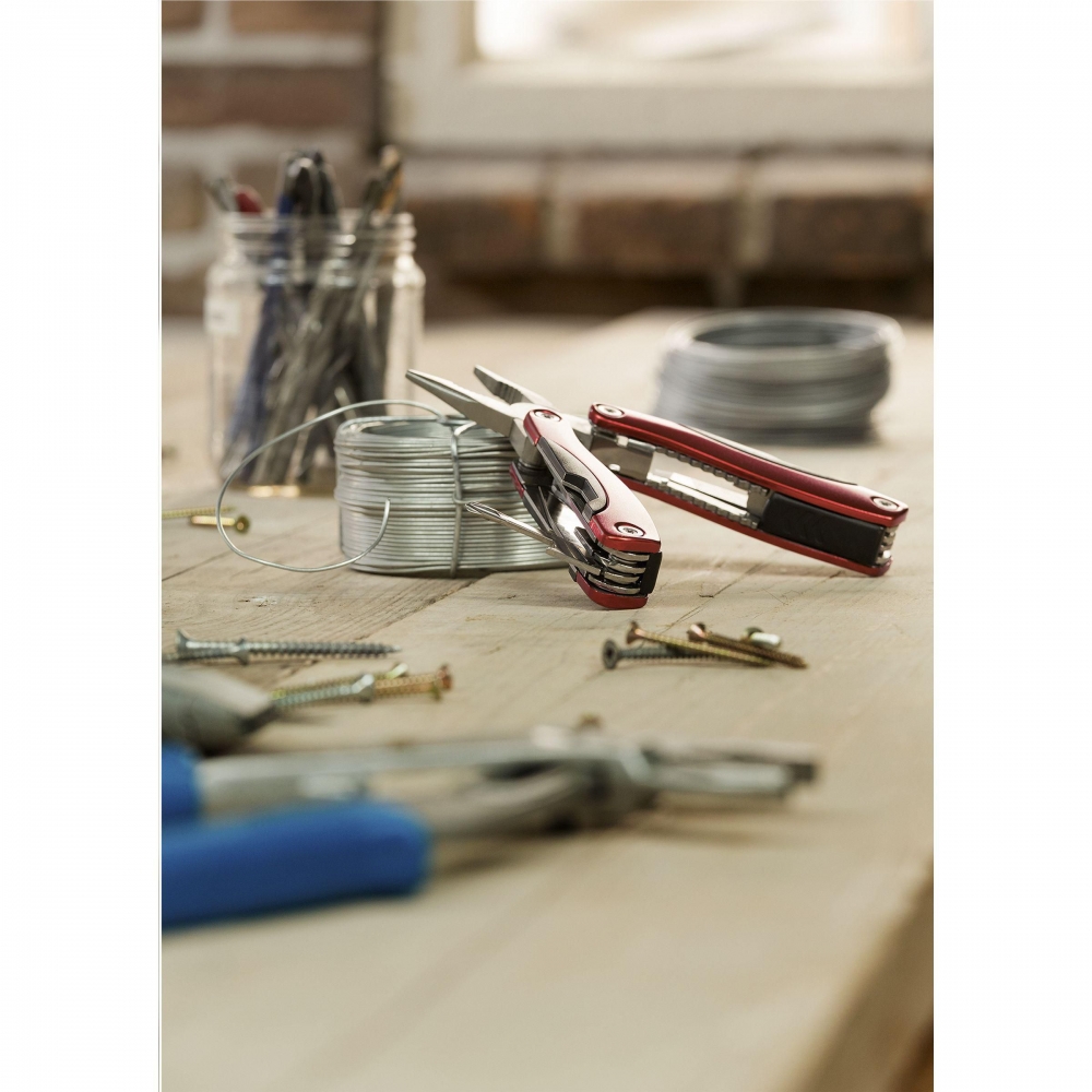 Kompakte Multizange aus Edelstahl mit Aluminiumhandgriff in Metallic-Look. 9-teilig mit 13 Funktionen: Zange, Isolierzange, 3 Schraubenzieher, Kreuzschraubenzieher, Feile, Säge / Fischentschupper, Messer, Reibahle, Dosenöffner und Kapselheber. In einem 600D Nylonetui. Beachten Sie, dass möglicherweise lokale Vorschriften für den Besitz und / oder das Tragen von Messern oder Multitools in der Öffentlichkeit gelten.
