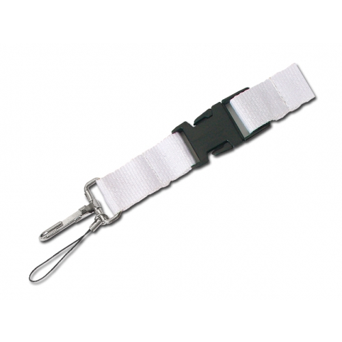 Lanyard mit Metallkarabiner, abnehmbarem Steckverschluss und Panikverschluss. 25mm Breite. Der Sublimationsdruck ist nur auf weißen Artikeln möglich.