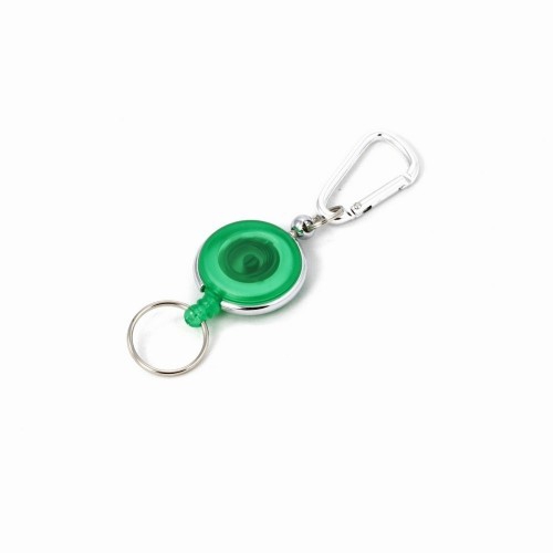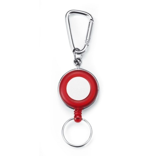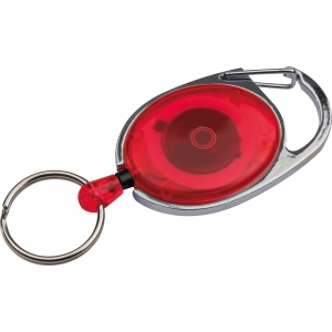 Schlüsselanhänger mit Karabinerhaken und Gürtelclip, sowie einem ausziehbaren Schlüsselring. Ihre Werbung wird auf das farbige Kunststoffteil gedruckt.
